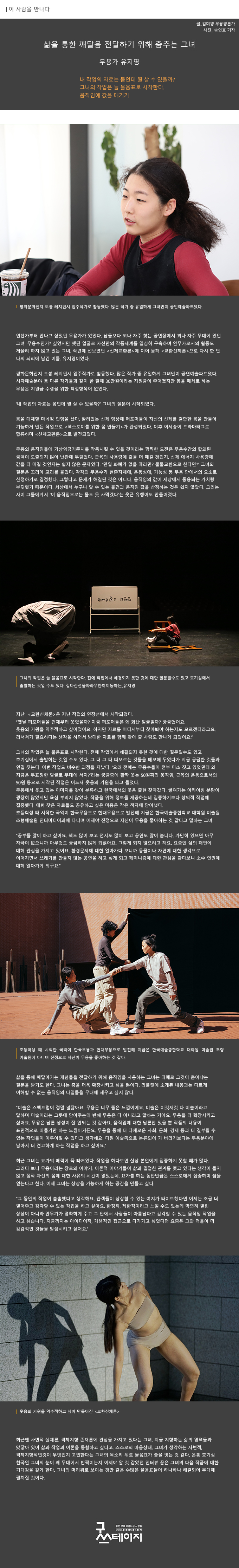 이 사람을 만나다_ 삶을 통한 깨달음을 전달하기 위해 춤추는 그녀, 무용가 유지영