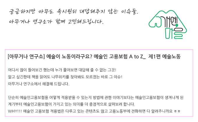 | [아무거나 연구소] 예술이 노동이라구요? 예술인 고용보험 A to Z_ 제1편 예술노동 | |||