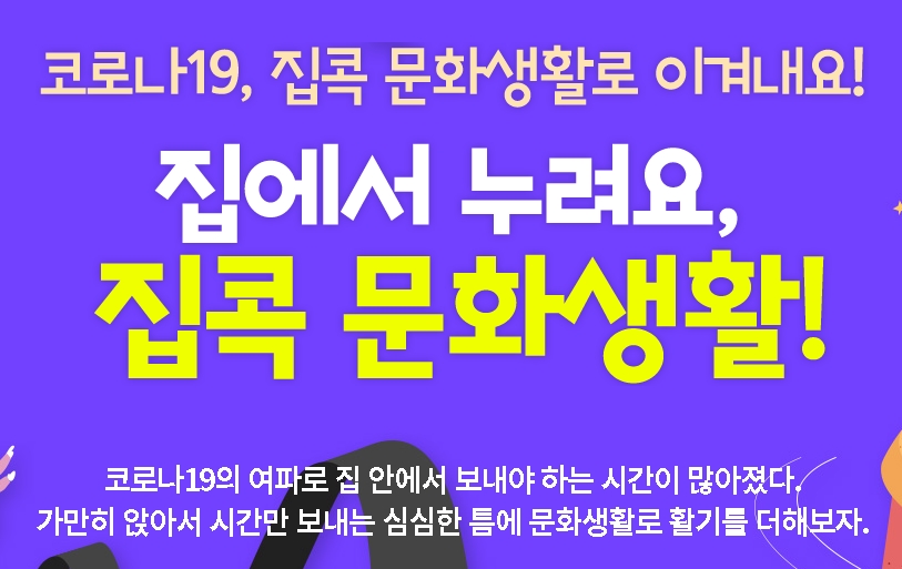 | 코로나19, 집콕 문화생활로 이겨내요 - 문체부및산하기관 문화예술온라인 콘텐츠 모음 | |||||