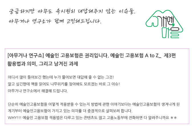 [아무거나 연구소] 예술인 고용보험은 권리입니다. 예술인 고용보험 A to Z_ 제3편 활용법과 의미, 그리고 남겨진 과제