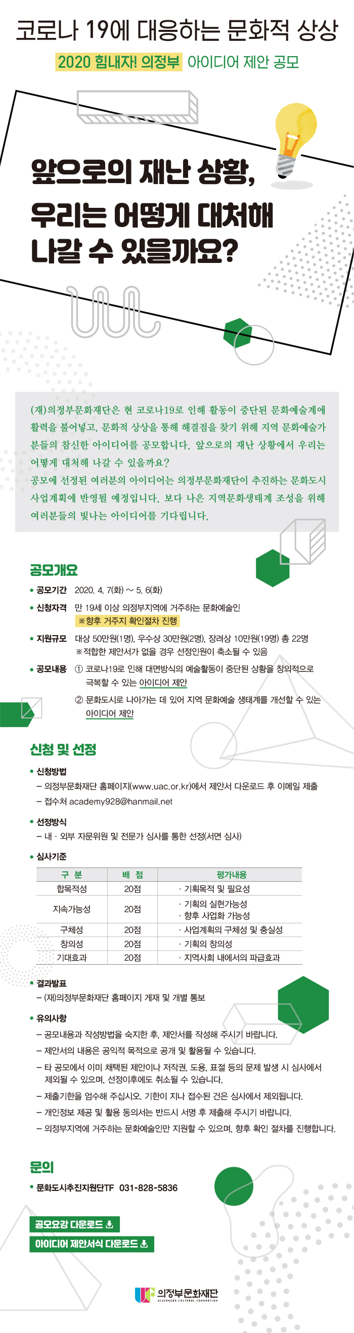 코로나19에 대응하는 문화적 상상 2020 힘내자 의정부 아이디어 제안 공모