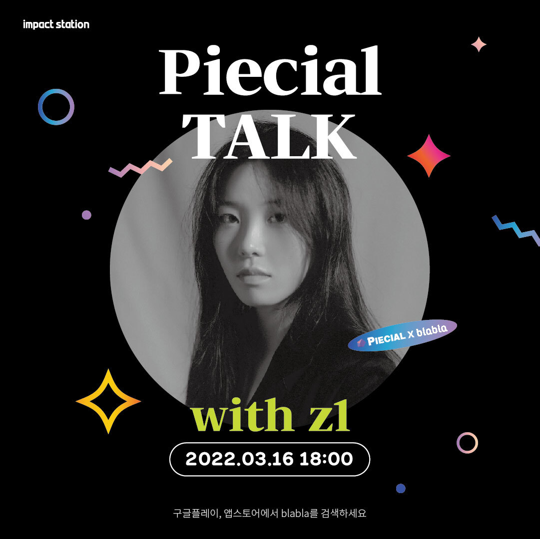 ✓행사소개 - 언제? 2022년 3월 16일 수요일, 18:00 - 어디서? ‘blabla’앱 속 블라파티 ‘피셜TALK with z1’으로! - 누구랑? NFT에 관심있는 사람이라면 누구나! ✓참여방법 -신청해주신 분들께 입장링크를 문자로 보내드려요! (현장 즉석 참여도 가능^^) ✓행사진행 순서 -아티스트 소개 -talk time (작가&사회자) -참여자 질의응답 오디오 콘텐츠로 평소 궁금했던 디지털 아트 이야기를 직접 작가님께 들어볼 수 있는 시간! 이어폰만 꽂고 들어오세요! ✓문의 - piecial@impactstation.kr |