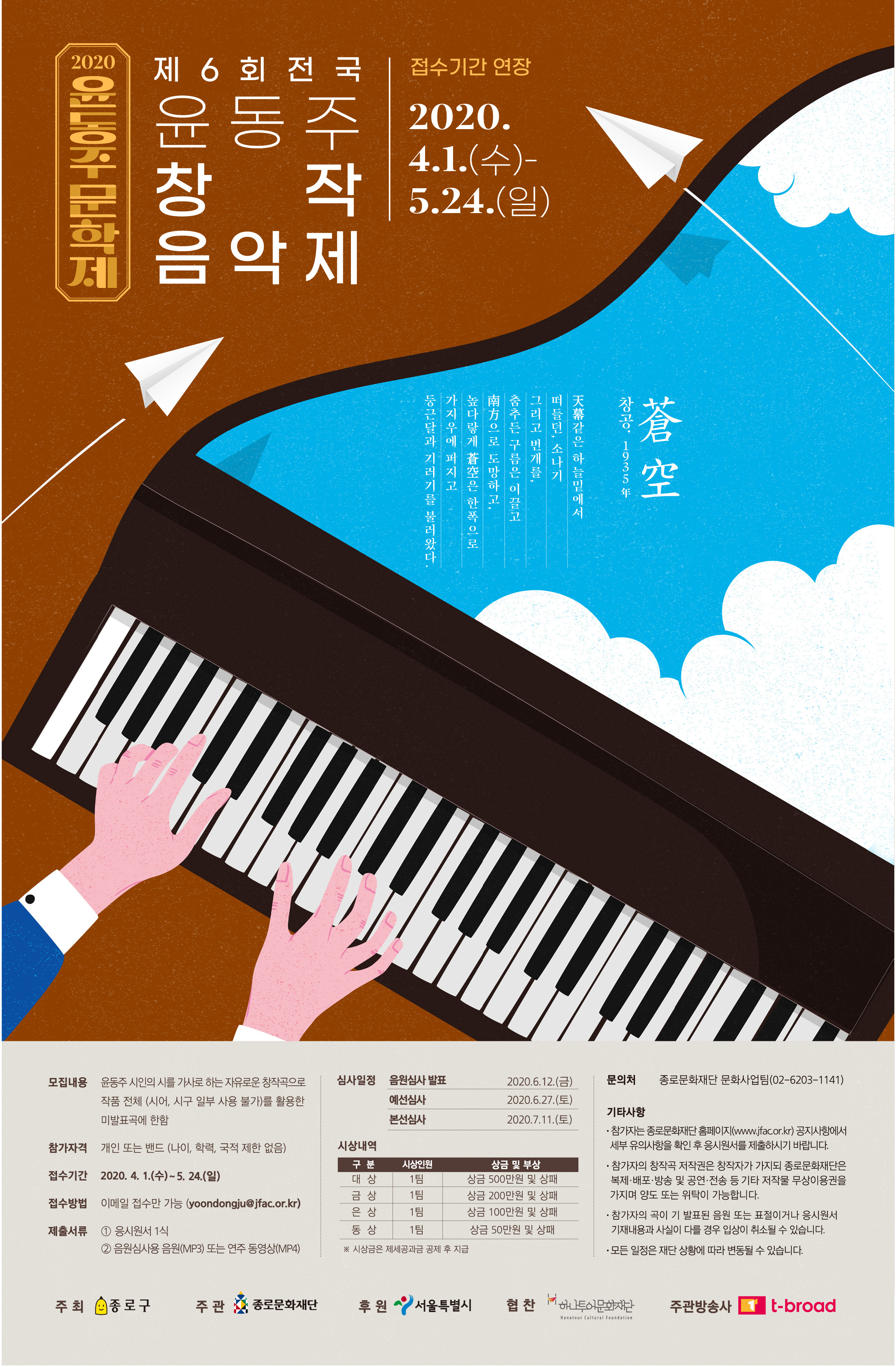 종로문화재단에서 제6회 윤동주 창작음악제 참가자모집중입니다.