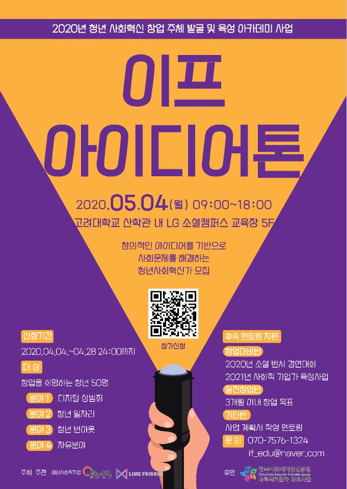 | 이프 아이디어톤 - 2020년 청년 사회혁신 창업주체발굴 및 육성 아카데미사업 | |||||