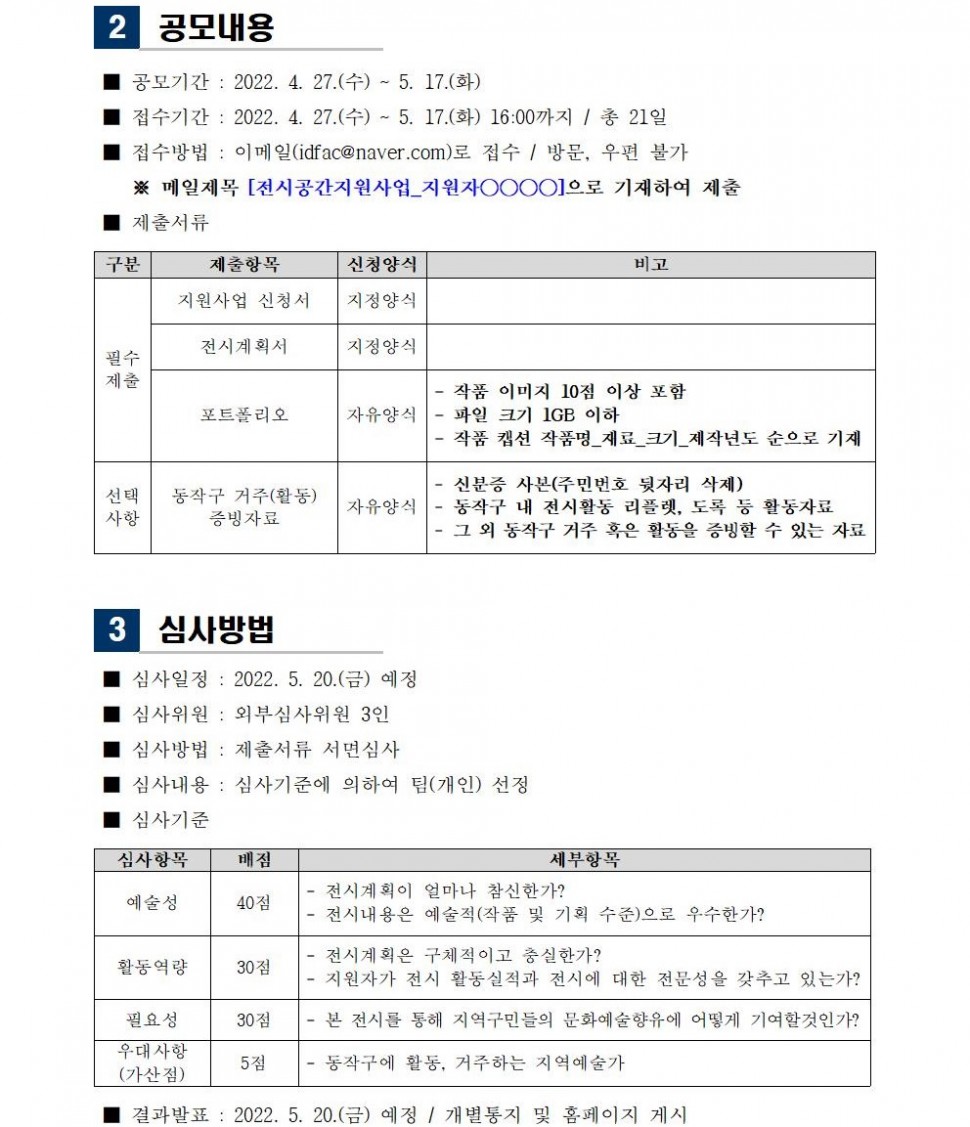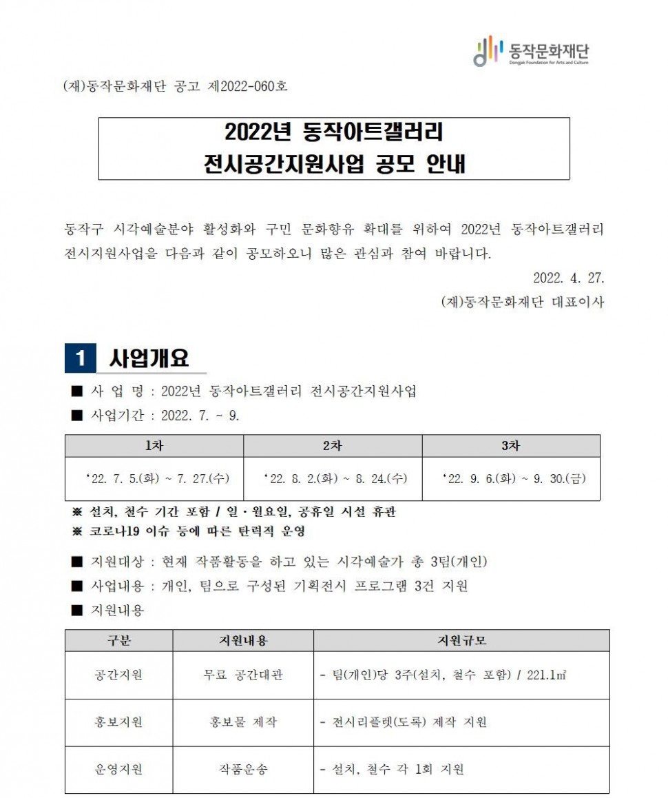 | 2022년 동작아트갤러리 전시공간지원사업 모집 공고 | |||