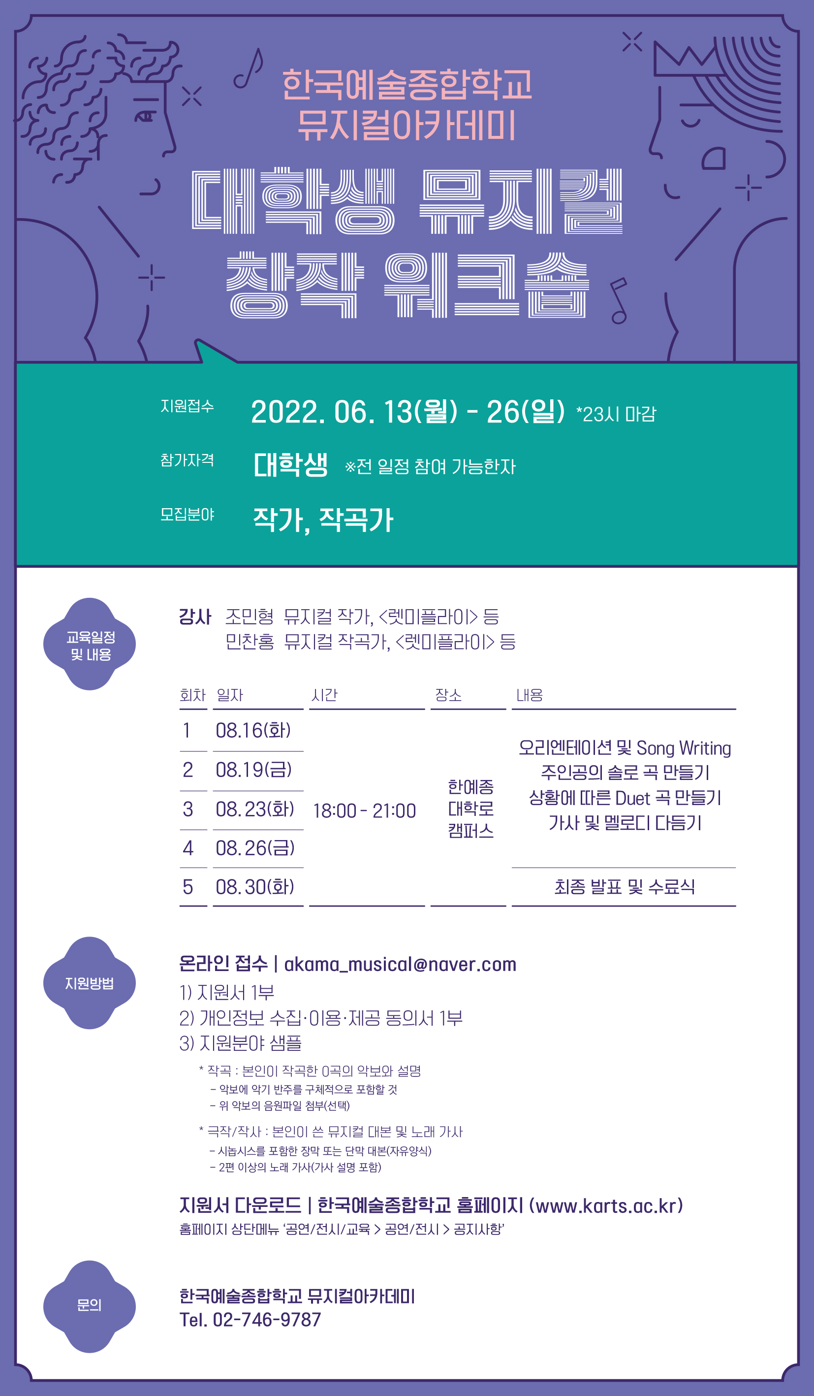 | [한국예술종합학교 뮤지컬아카데미] 대학생 뮤지컬 창작 워크숍 모집공고 | |||