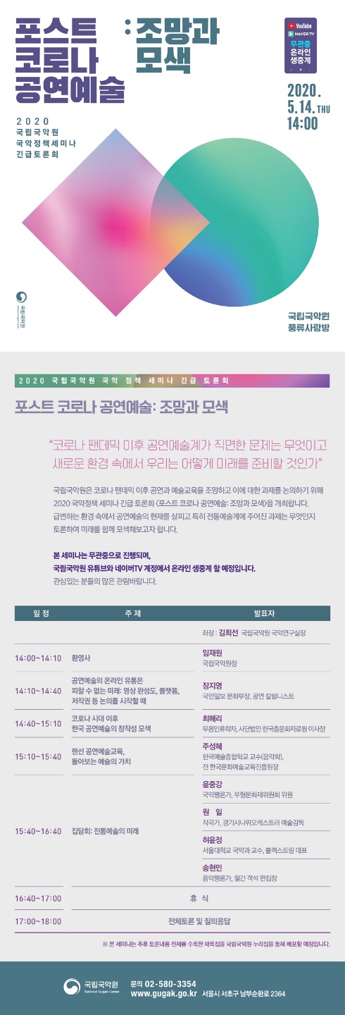 국립국악원에서 코로나19 팬데믹을 겪은 이후 대한민국 공연예술에 대해 조망해보는