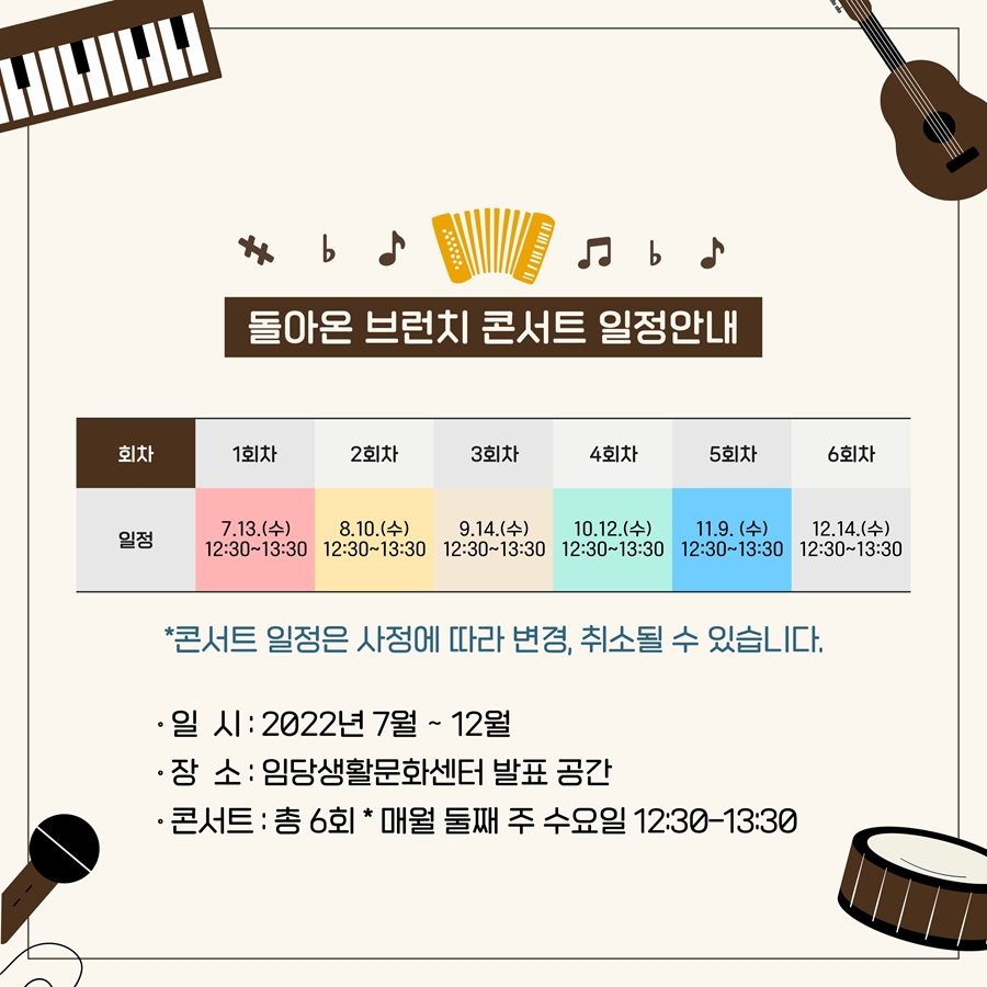 | 2022 임당생활문화센터 기획공연 《돌아온 브런치 콘서트》 일정 안내 및 참여자 모집 | |||||||||||||||||