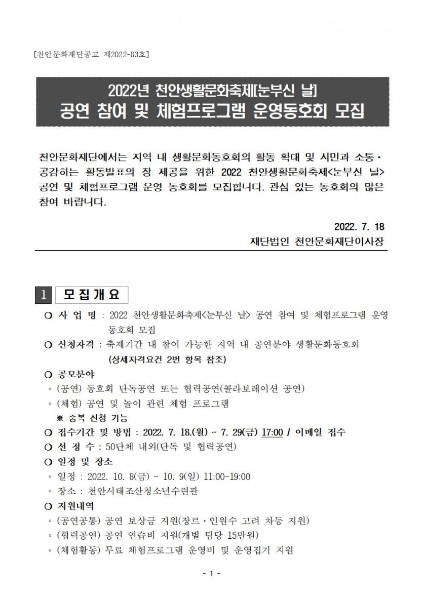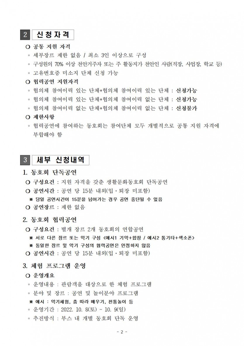 | 2022 천안생활문화축제 공연 및 체험프로그램 참여 동호회 모집 | |||