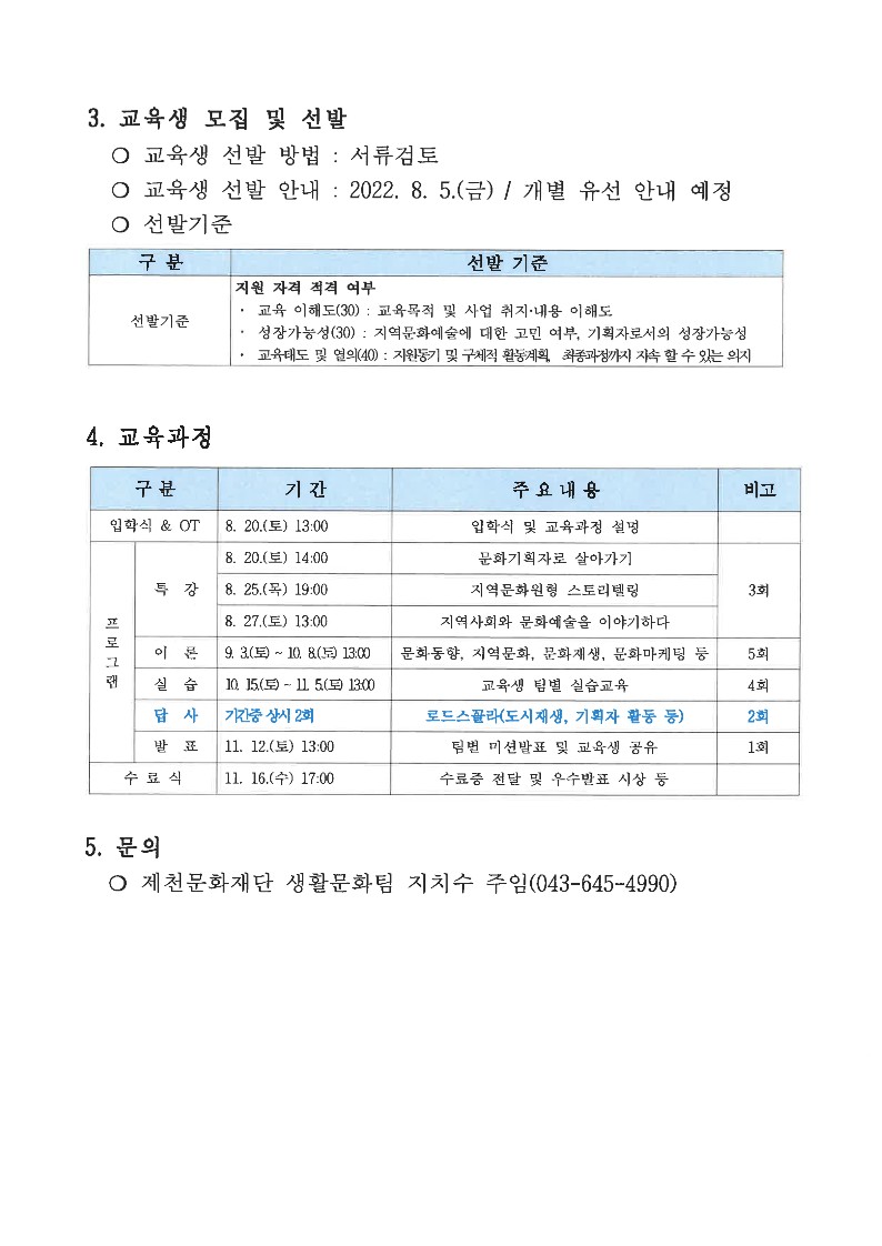 | 분야·대상 | 문화기획에 관심이 있는 자, 청년 위주 구성 | 인원 | 10명 내외 |