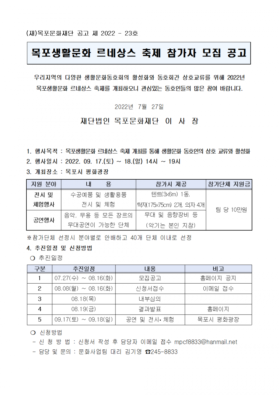| 목포생활문화 르네상스 축제 참가자 모집 공고 | |||