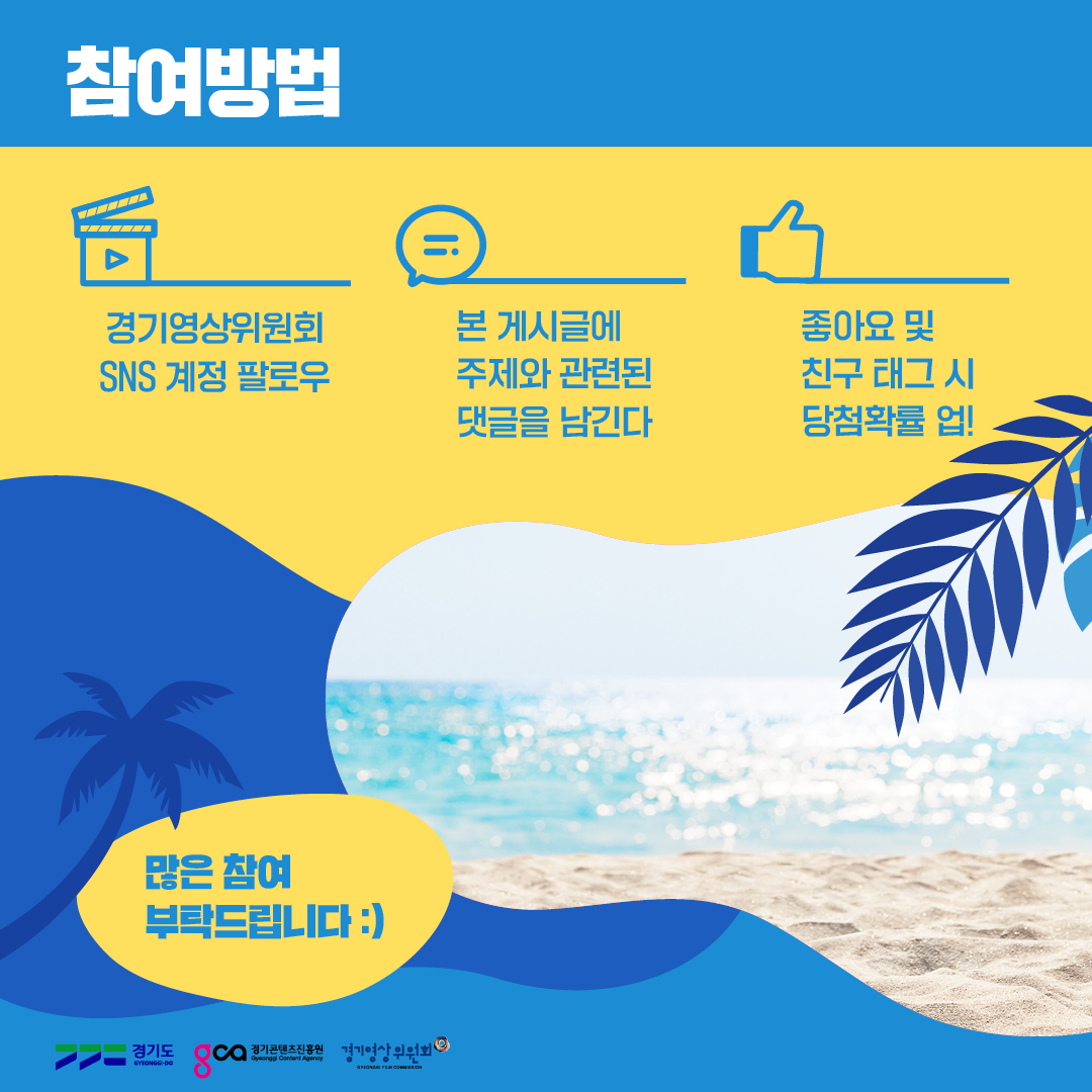 참여방법 - 경기영상위원회 인스타그램 팔로우 - 덧글로 영화 제목과 이유 남기기 - 게시글 좋아요 및 친구 태그 시 당첨 확률 업!