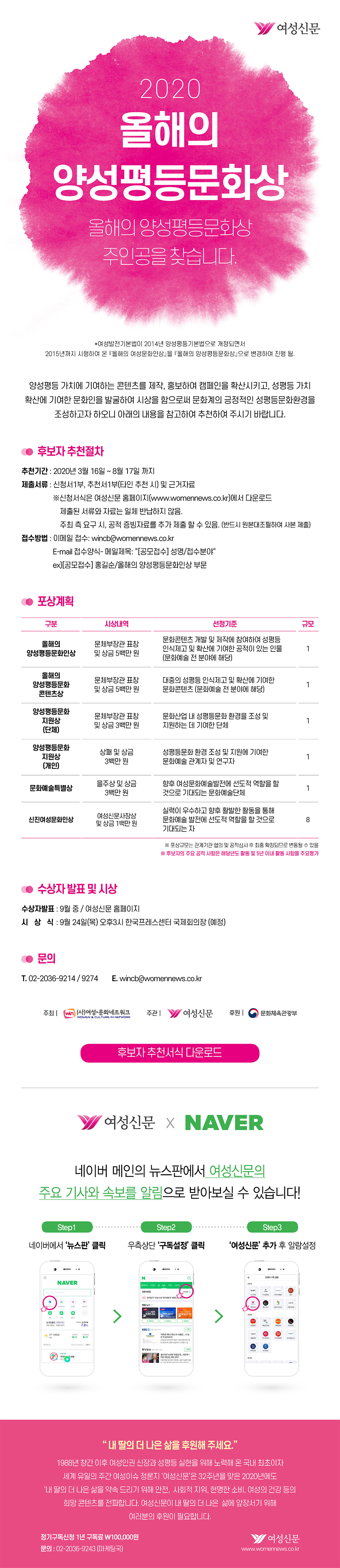 | 2020 올해의 양성평등문화상 후보자 추천 공모 | |||||