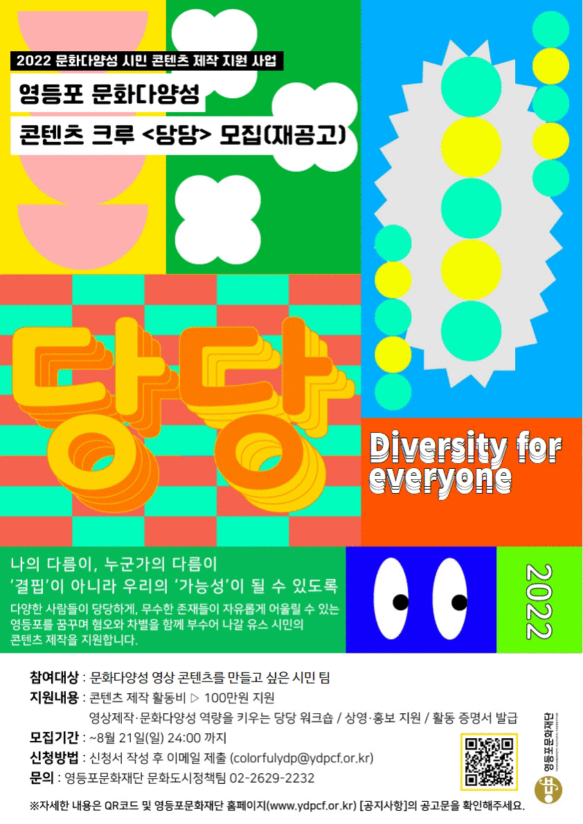 | 문화다양성 콘텐츠 제작 지원 사업 <당당> 모집 (~8/21) | |||