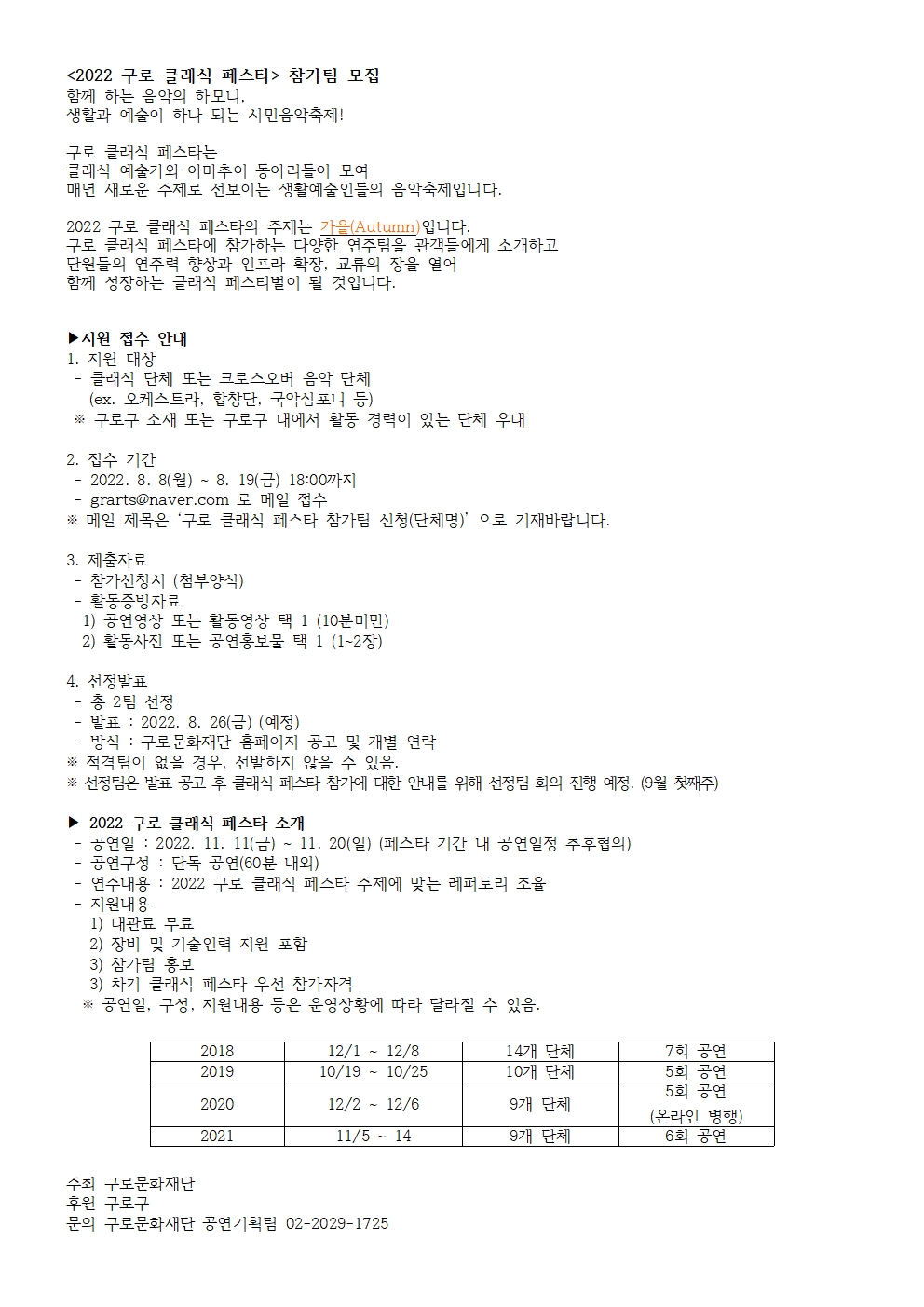| 2022 구로 클래식 페스타 참가팀 모집 | |||