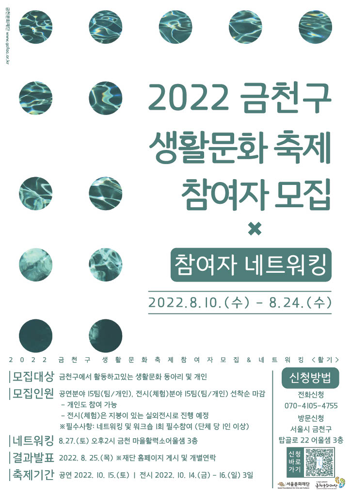| 분야·대상 | 금천구에서 활동하는 생활문화 동아리 및 개인 | 인원 | 15팀(단체/개인) |