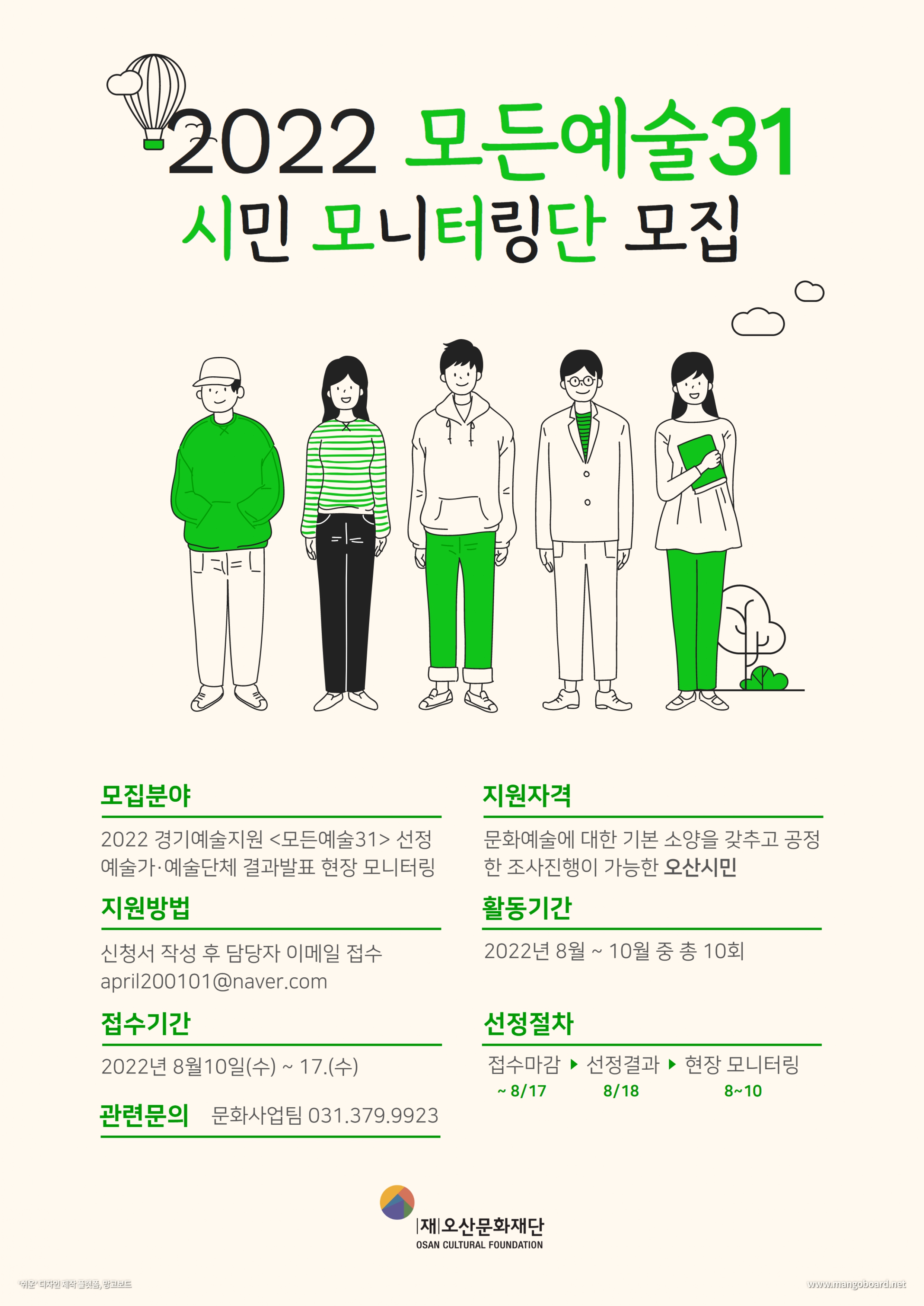 | 분야·대상 | 문화예술에 대한 기본 소양을 갖추고 공정한 조사진행이 가능한 오산시민 | 인원 | - |
