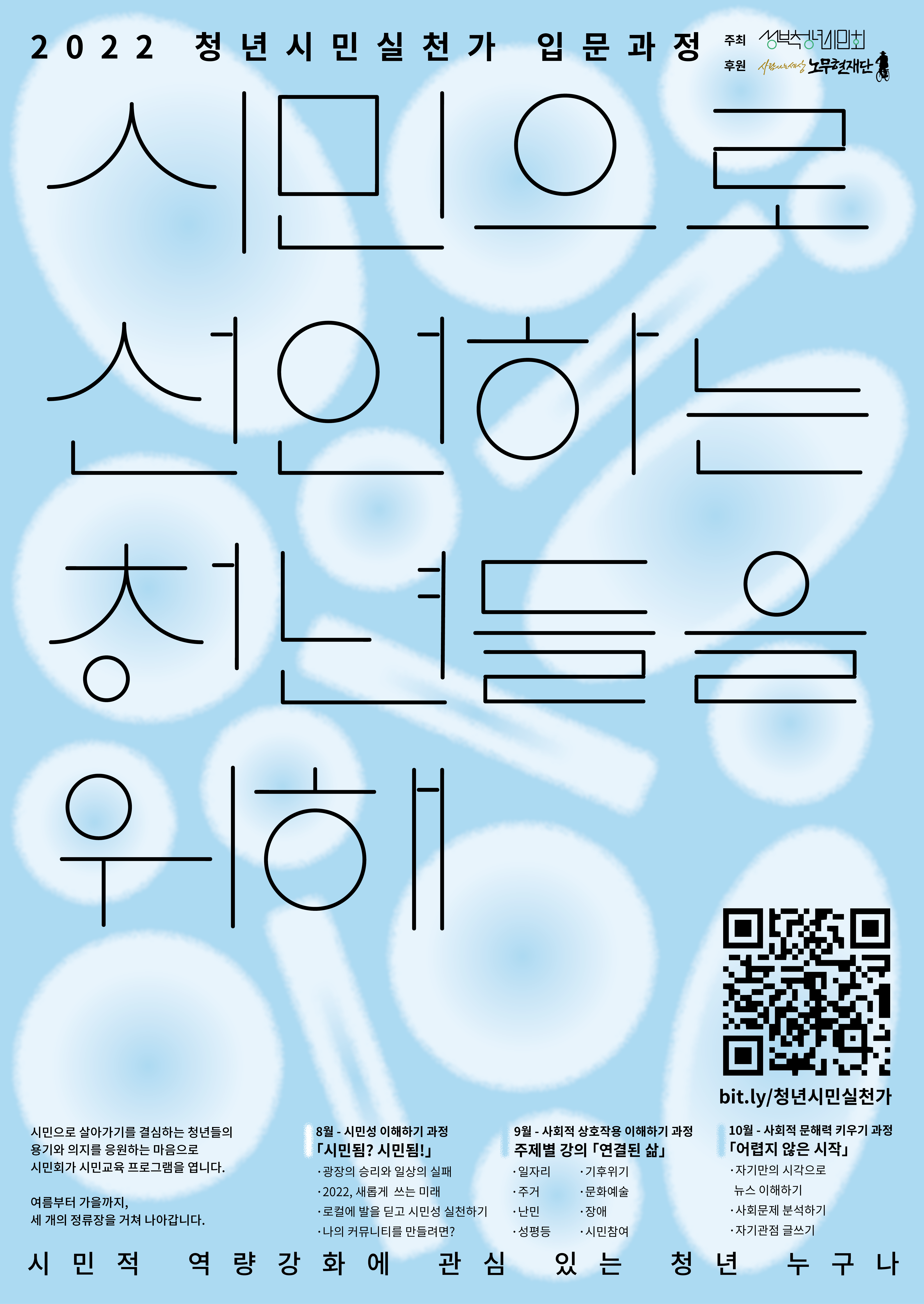 | 분야·대상 | 시민적 역량강화에 관심 있는 청년 (만 19-39세) | 인원 | 회차별 20명 내외 (선착순) |