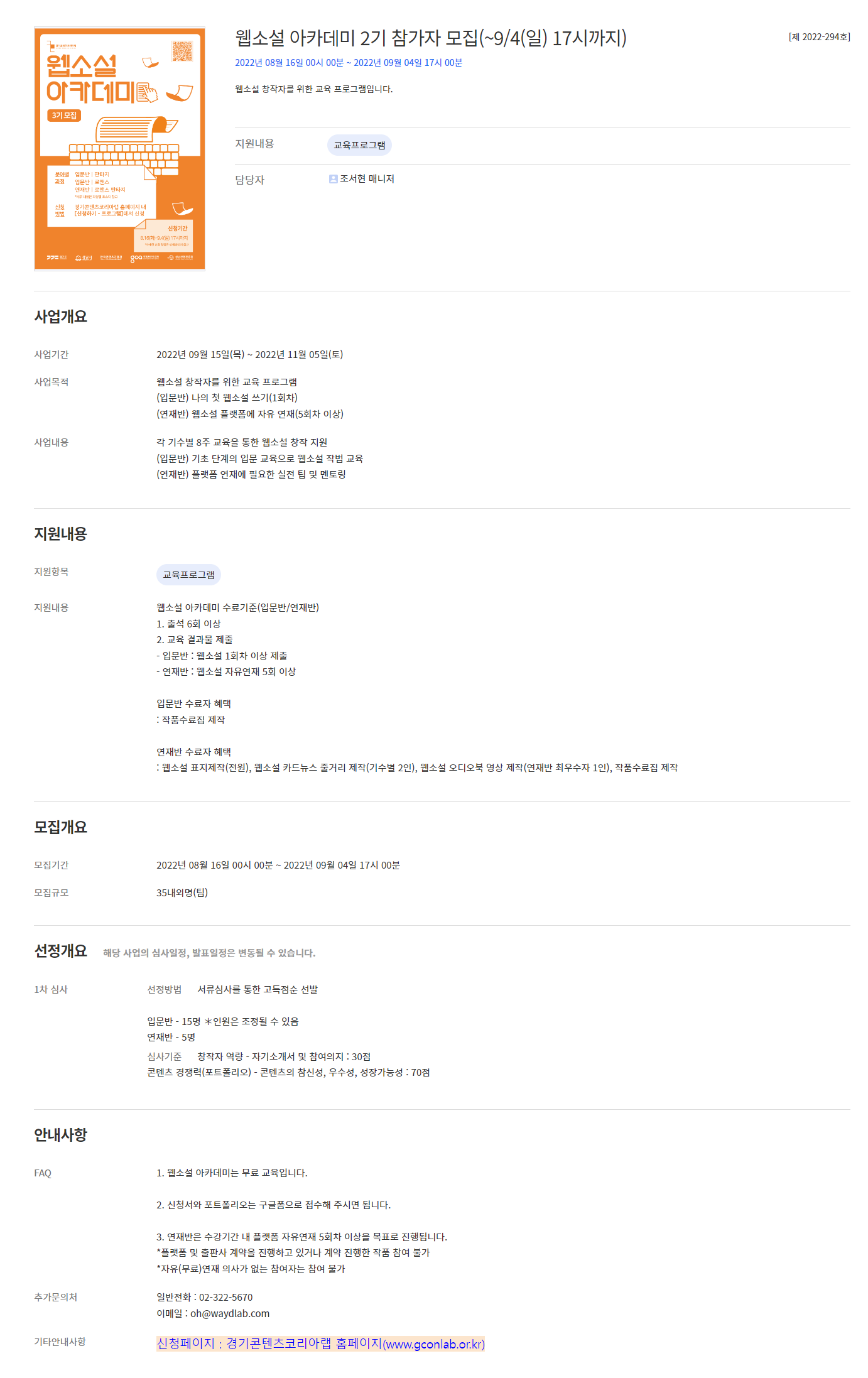 | 접수기간 | 2022-08-16 ~ 2022-09-04 | ||