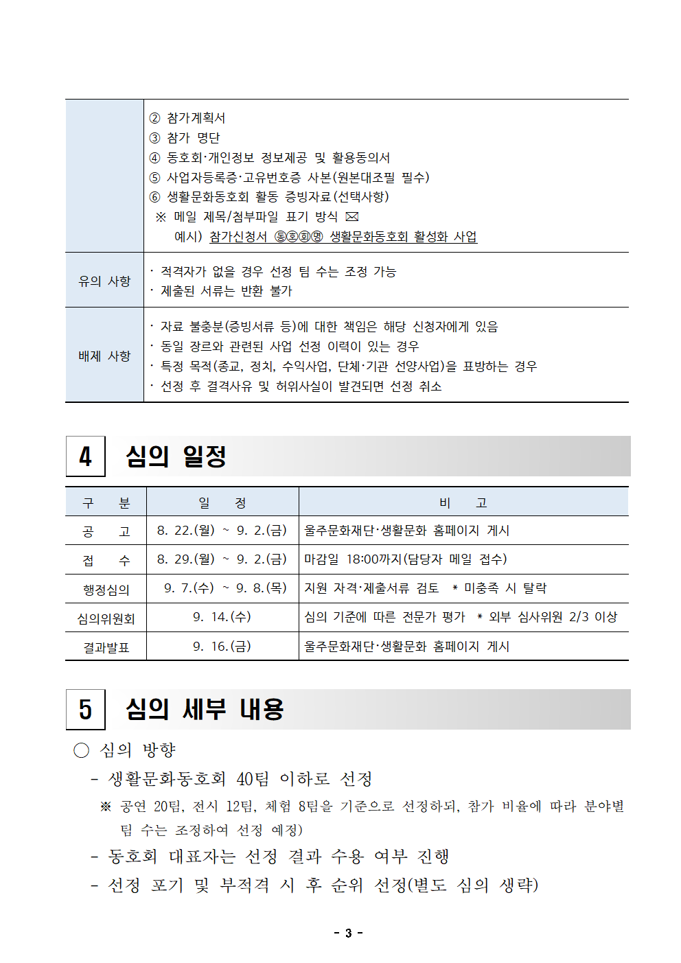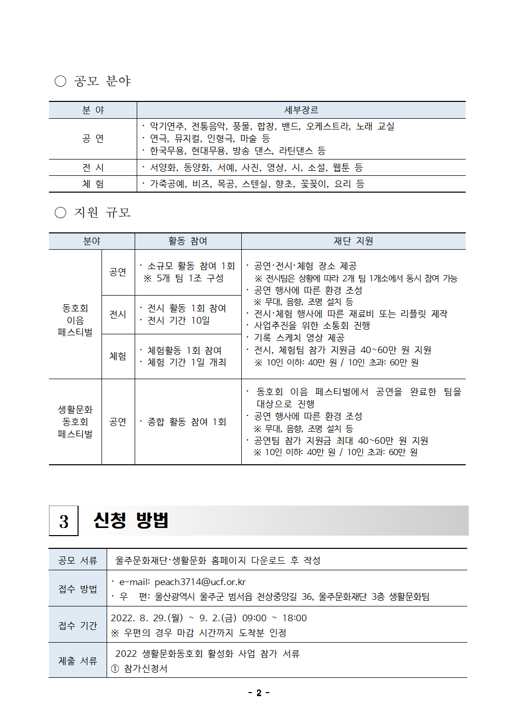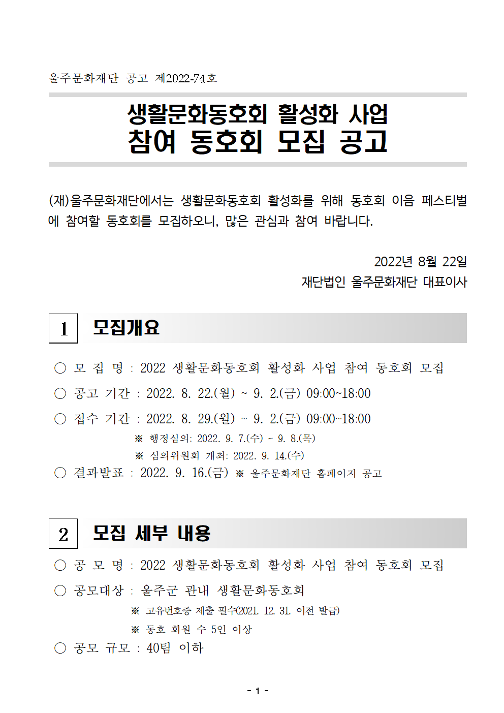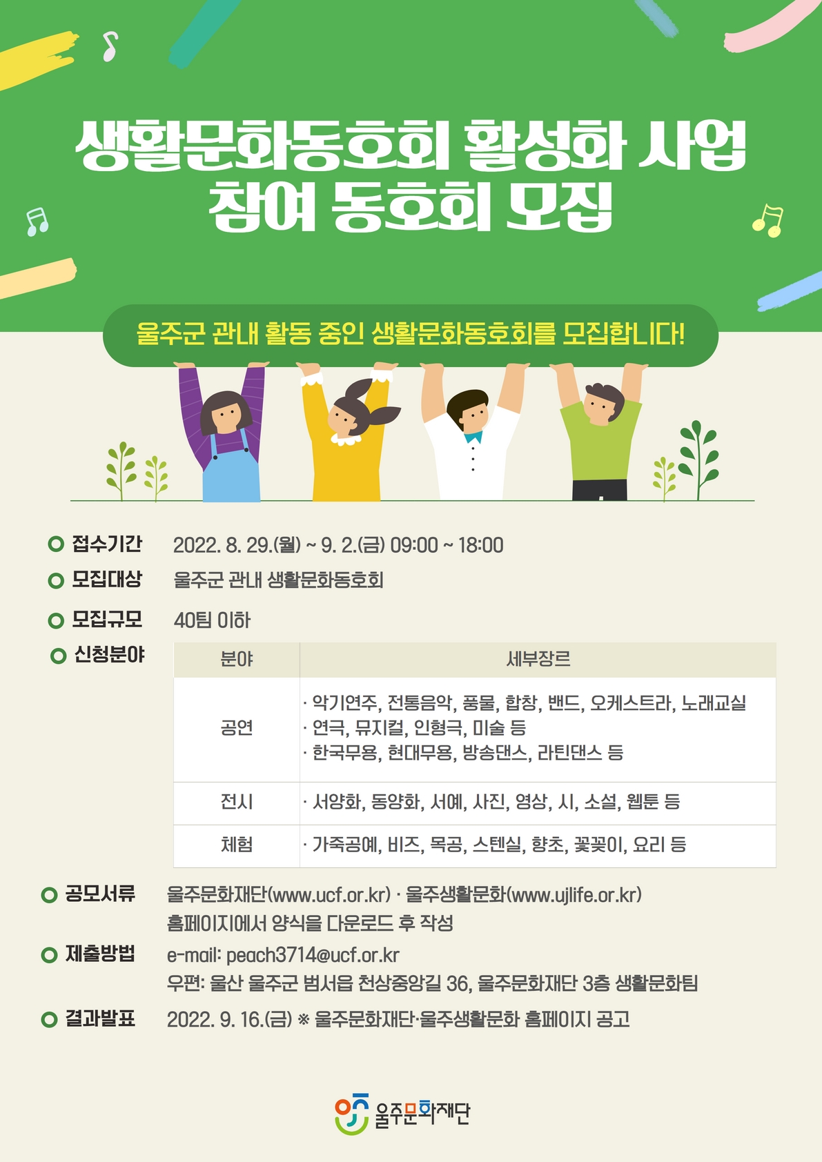 | 분야·대상 | 울주군 관내 생활문화동호회 | 인원 | 40팀 이하 |