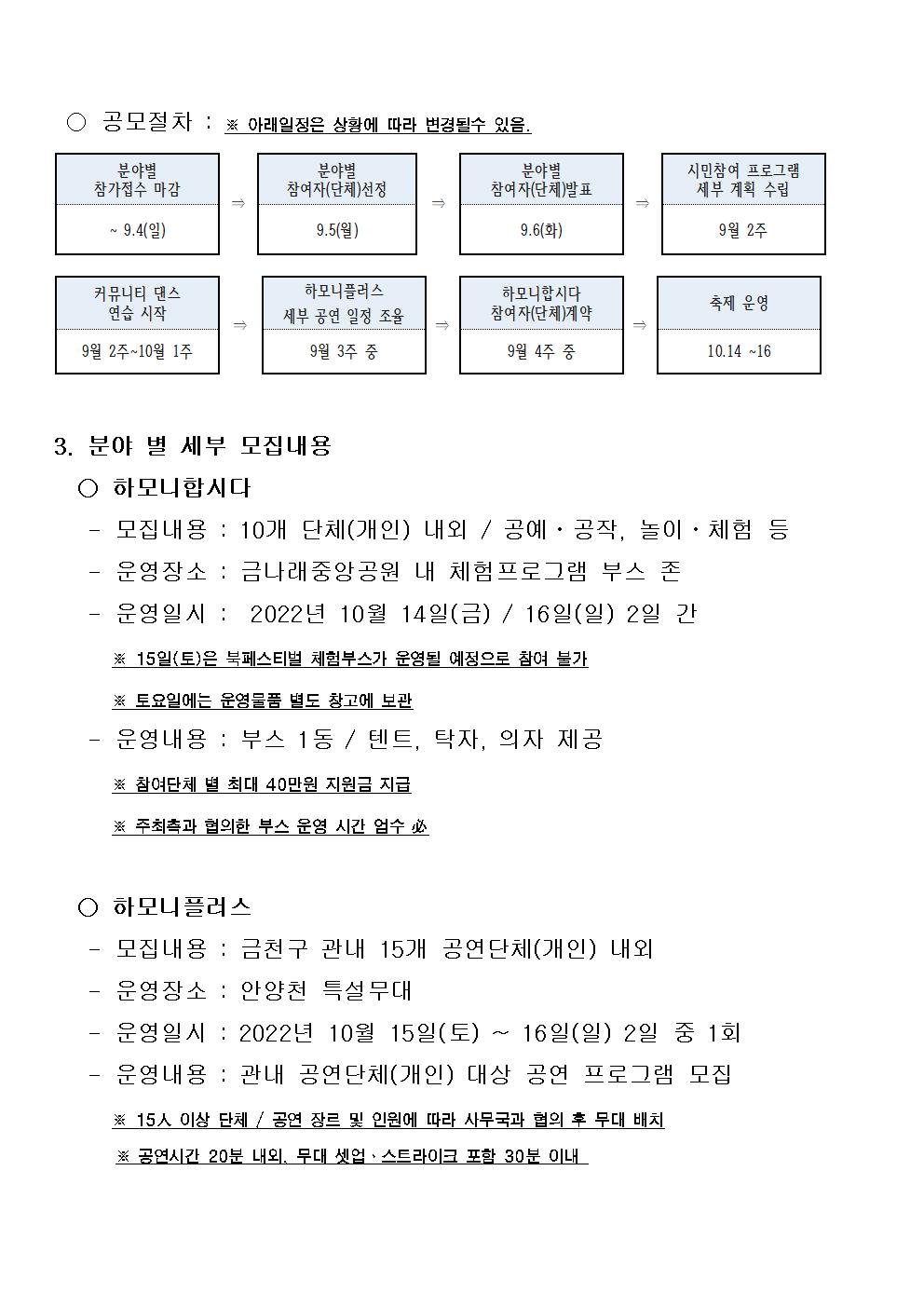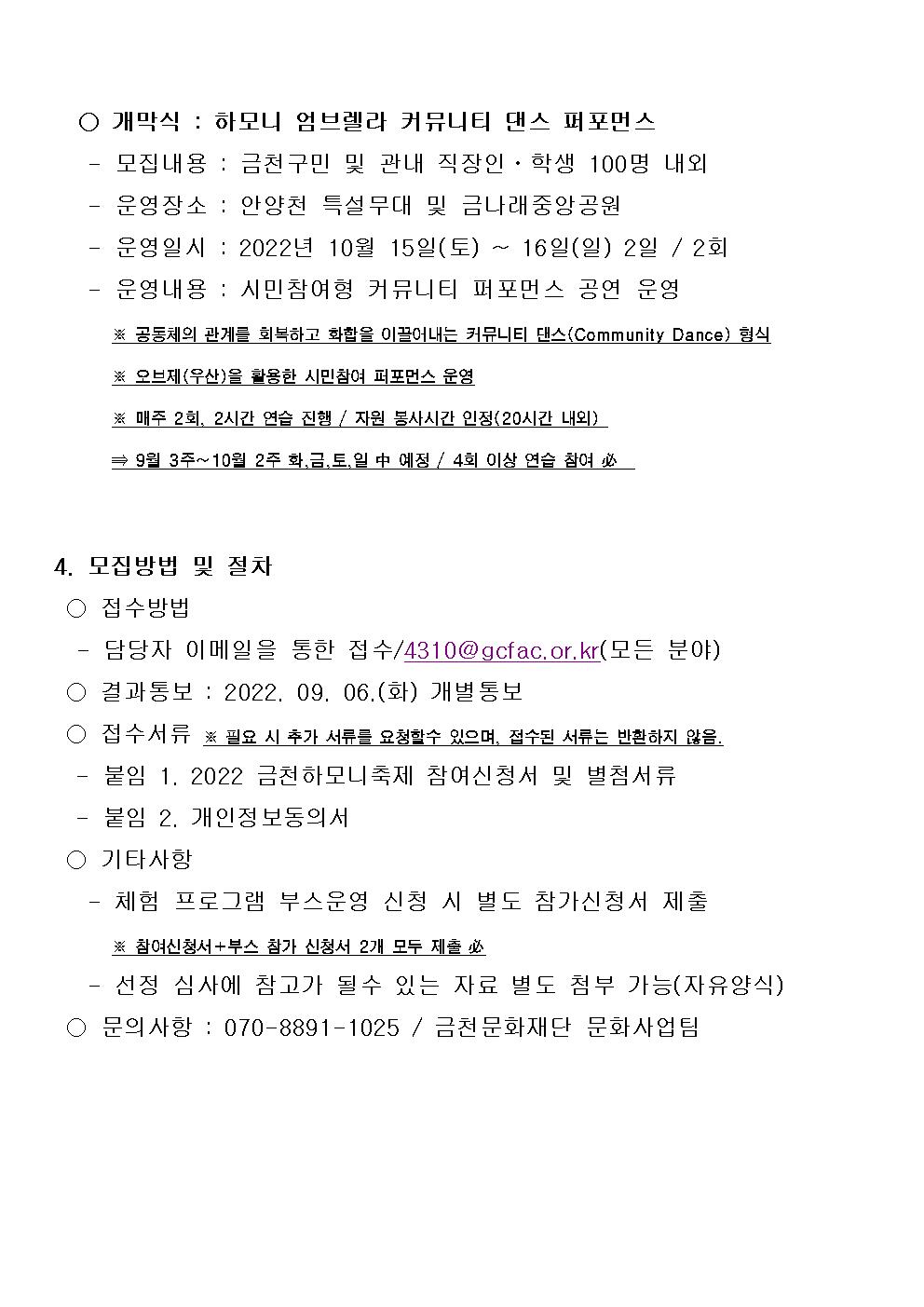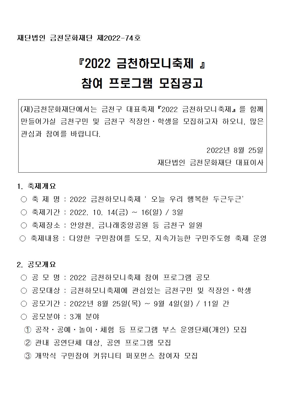 | 2022 금천하모니축제 참여 프로그램 모집공고 | |||