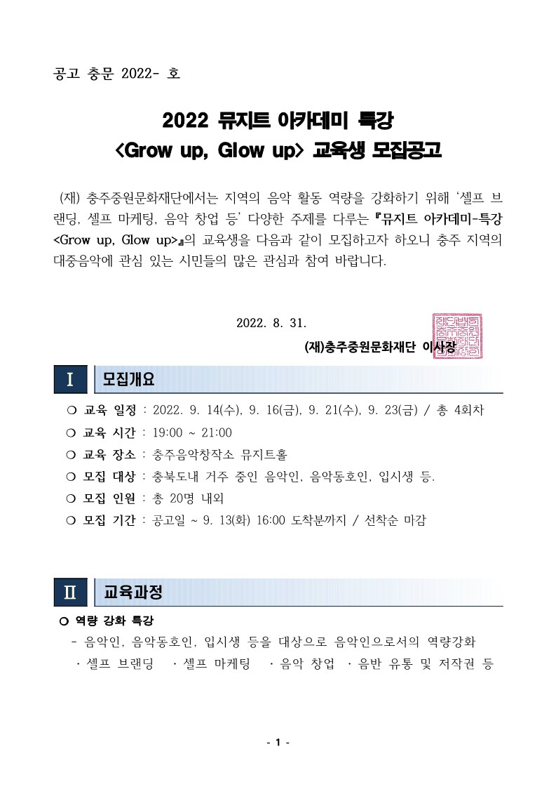 | 2022 뮤지트 아카데미 특강 'Grow up, Glow up' 교육생 모집공고 | |||