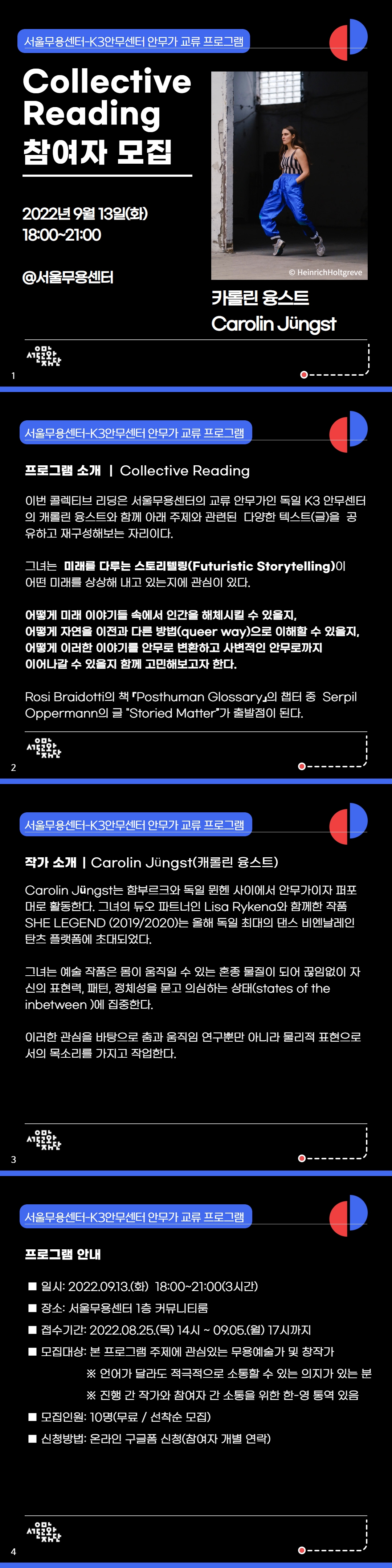 | 2022 서울무용센터-K3안무센터 안무가 교류 프로그램 – Carolin Jüngst 참여자 모집 | |||