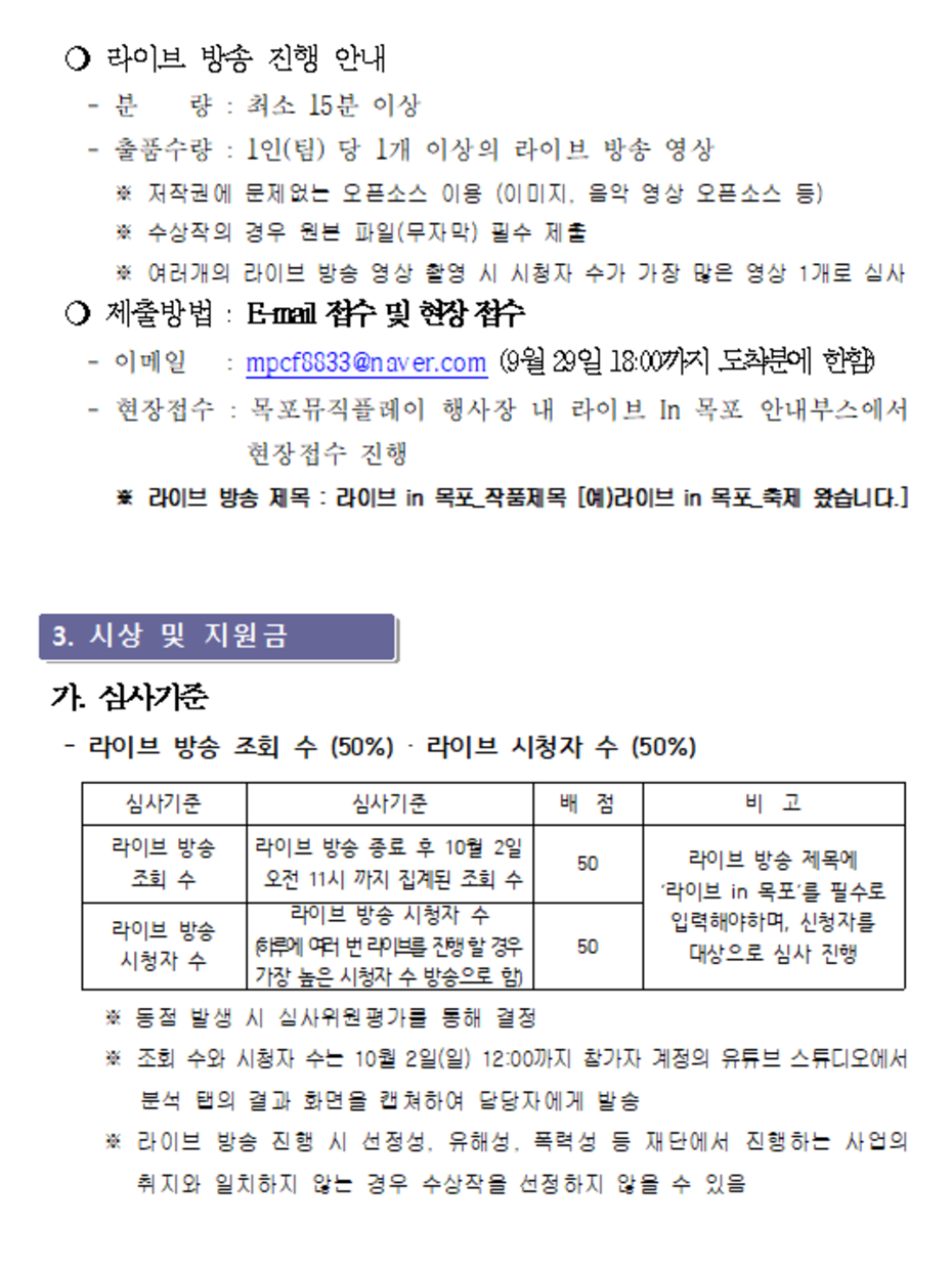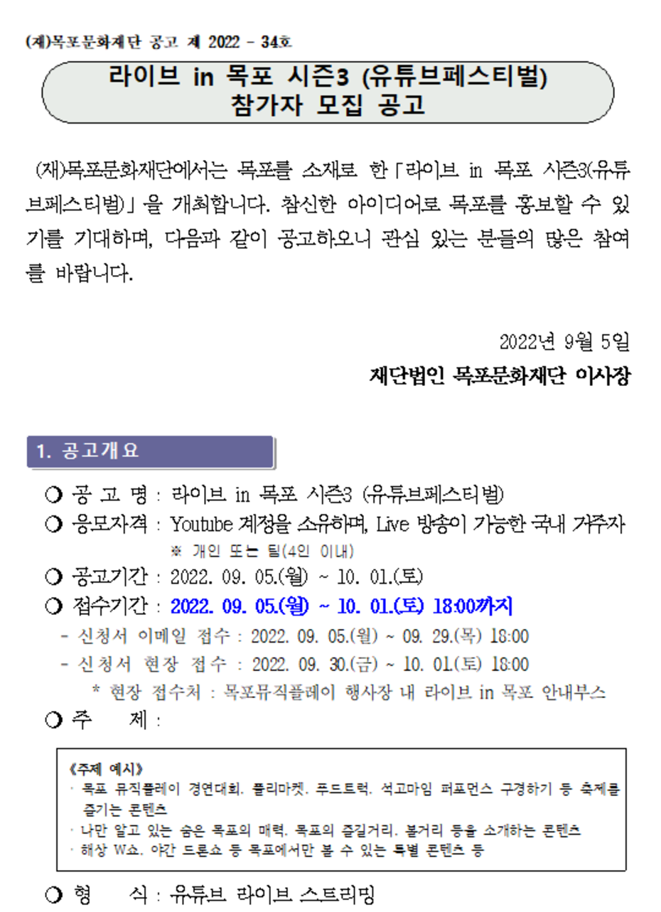 | 라이브 in 목포 시즌3(유튜브 페스티벌) 참가자 모집 공고 | |||