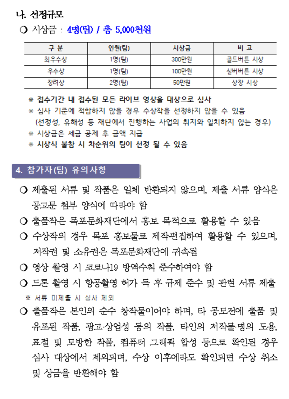 | 분야·대상 | youtube 계정을 소유하며, Live 방송이 가능한 국내 거주자 | 인원 | 개인 또는 팀(4인 이내) |