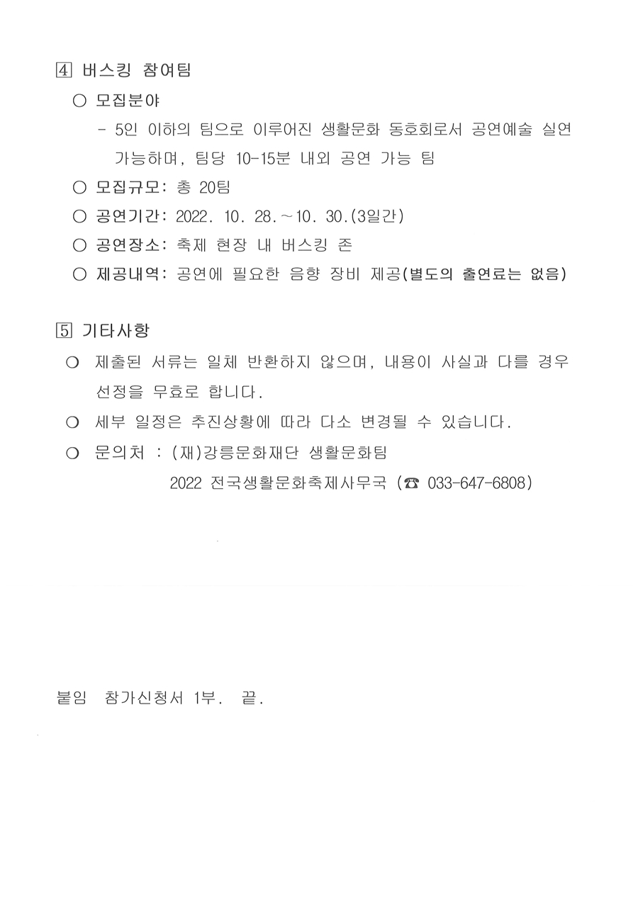 | 2022 전국생활문화축제 참여팀 모집 공모 | |||