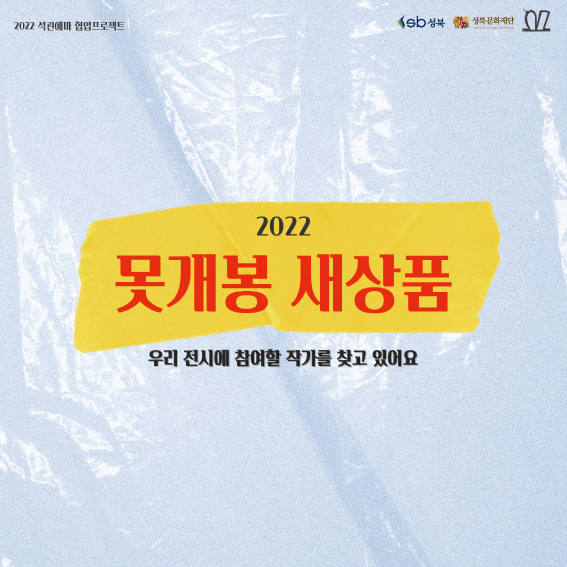 ![]() 안녕하세요:) 석관예술마을만들기 커뮤니티 "당모"입니다. 저희는 매주 화요일 저녁 8시에 모여서 함께 다양한 문화예술 관련 프로그램들을 기획하고 함께 진행하고 있습니다. <못개봉 새상품>은 창작자, 기획자 혹은 어떤 사람이라도 특히나 더 애정이 가고 노력한 것들이 수많은 경쟁, 공모전, 합격 등의 이유에 의해 잊혀지는 것에 대한 아쉬움에서 시작되었습니다. 많은 작가들, 청년들과 함께 자신의 이야기를 나누고 소박하지만 진실되게 자신의 소중한 것을 꺼내는 전시로 나아갔으면 하는 바램입니다. 저희에게도 여러분들에게도 소중한 기억에 남는 시간이 되었으면 좋겠습니다. _____________________________________________ <못개봉 새상품>이란? 합격과 허들의 문턱에 걸려 세상에 보이지 못한 사람들의 작품, 기획, 아이템의 재발견하고 실패와 시도에 지친 청년에 대한 노고를 위로하고 응원하는 전시입니다. ______________________________________________ 모집 - 모집 기간 : 2022.08.31.(수) ~ 2022.09.12.(월) 밤 12시까지 - 모집 자격 : 합격과 허들의 문턱에 걸려 세상에 보이지 못한 작품, 기획, 아이템 등을 가진 자 - 모집 장르 : 미술 작품&공예품, 기획서, 이모티콘, 배우 프로필, 음악 - 모집 조건: 참여 작가 선정시, <못개봉 새상품> 쌀롱에 필수 참여 ⭐신청링크⭐ 제출서류 및 선정기준 신청하시는 장르에 맞게, 설문을 채워나가시며 제출해 주세요 분야 선택 후, 세부 내용 한 번 더 공지되어 있어요! 모든 제출 서류는 선정 후, 즉시 폐기시킬 예정이에요 ______________________________________________ 행사 개요 - 전시 기간 : 2022.10.24(월)~10.30(일) - 전시 장소 : 오리랩하우스, 돌곶이생활문화예술센터 1층 <못개봉 새상품> 쌀롱 일시 - 첫 번째 쌀롱(OT 및 네트워킹): 9월 27일 화요일 오후 7~10시 - 두 번째 쌀롱(함께하는 전시 구성 이야기): 10월 4일 화요일 오후 7~10시 - 두 번의 쌀롱 모두 필수 참여 (푸짐한 다과 제공) 문의 02-6906-3198 (성북문화재단 지역문화팀)
