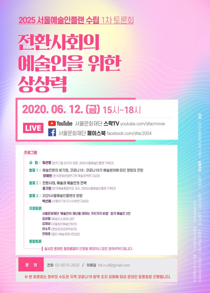 오늘 6월 12일 오후3시에 2020 서울예술인플랜 1차 토론회