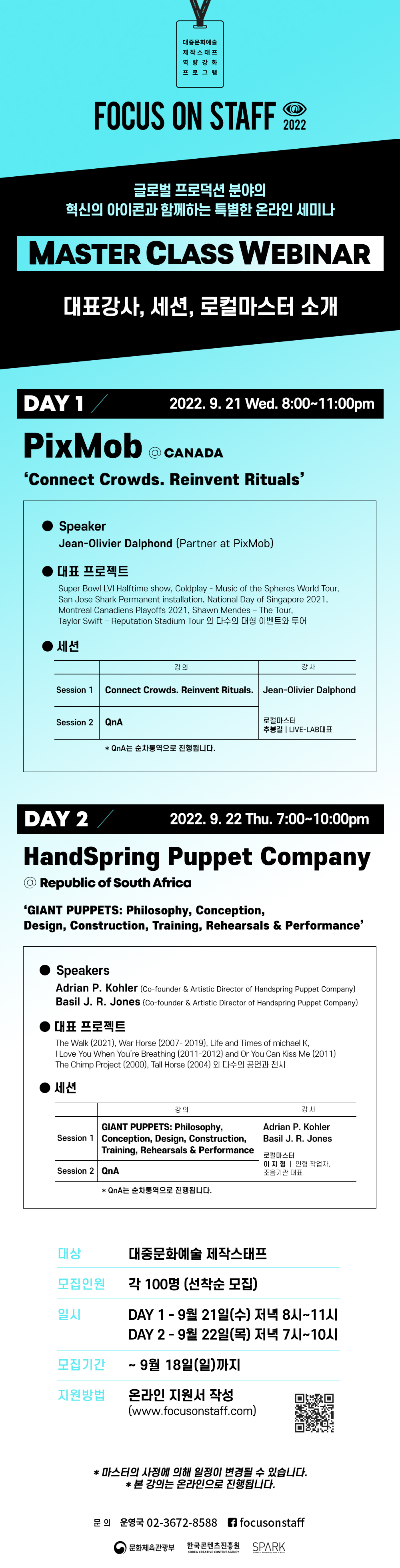 | 분야·대상 | 대중문화예술 제작스태프 | 인원 | 각 100명(선착순 모집) |