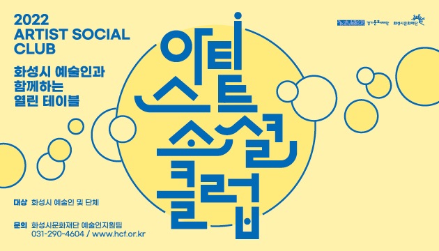 2022 아티스트소셜클럽 '예술인 아트페어' 참여자를 모집합니다! 아티스트 소셜클럽에서는 화성시 지역예술인의 의견을 적극 반영하여 자신의 예술활동을 알릴 수 있는 예술인 아트페어를 개최합니다! 작품판매, 쇼케이스, 디지털 홍보부스 등을 활용한 네트워킹 아트페어에 참여하실 예술인분들을 모집합니다! ![]() 예술인 아트페어 ● 일시 : 9.30.(금) ~ 10.1.(토) ● 장소 : 화성시문화재단 동탄복합문화센터 로비 ● 대상 : 관내 예술인 예술인아트페어 전시 참여하기 예술인아트페어 쇼케이스(공연) 참여하기 문의 031-290-4604