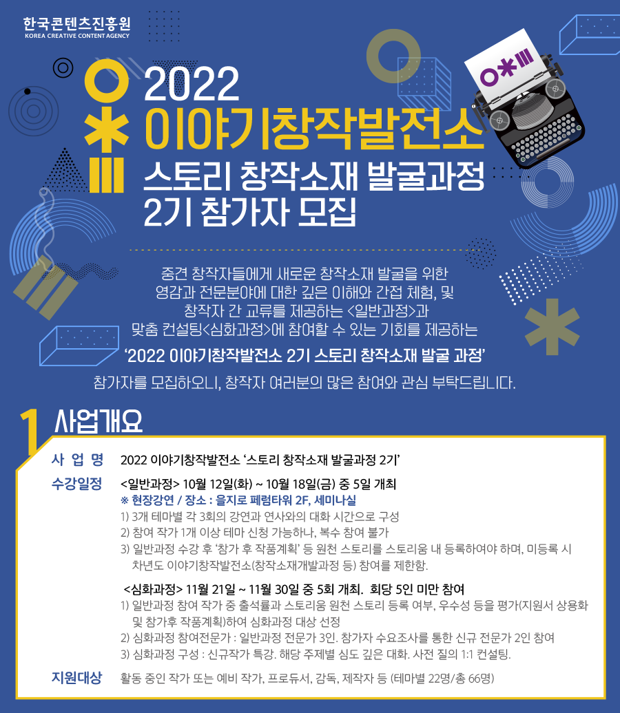 | 2022 이야기창작발전소 <스토리 창작소재 발굴과정 2기> 참가자 모집 | |||