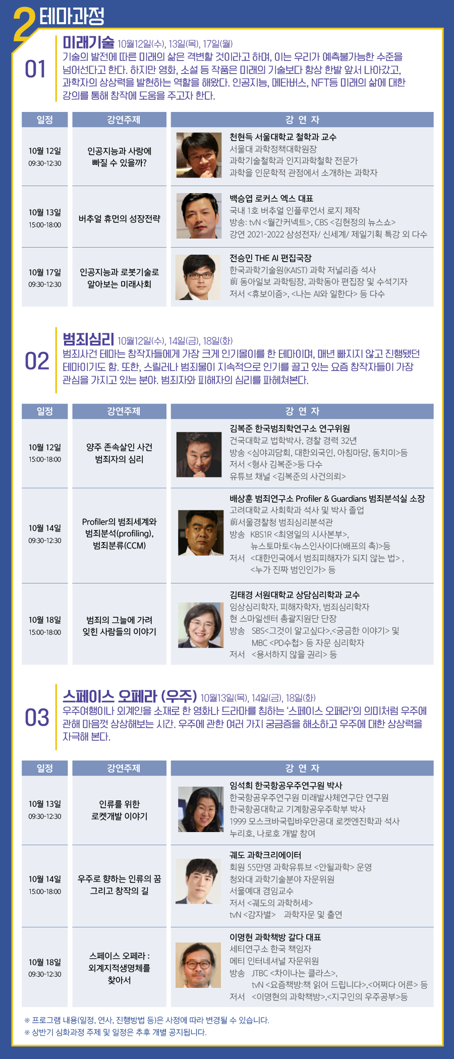 | 분야·대상 | 활동 중인 작가(신예작가), 프로듀서, 감독, 제작자 등 | 인원 | 테마별 22명 /총 66명 선발 |