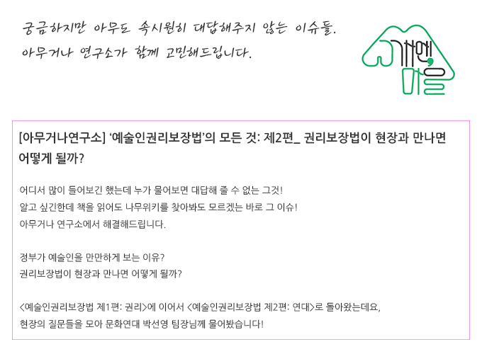 [아무거나연구소] ‘예술인권리보장법’의 모든 것: 제2편_ 권리보장법이 현장과 만나면 어떻게 될까?