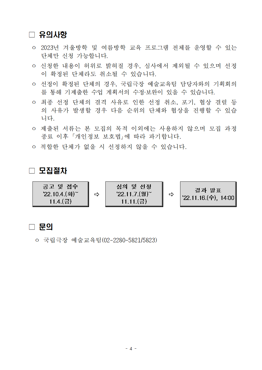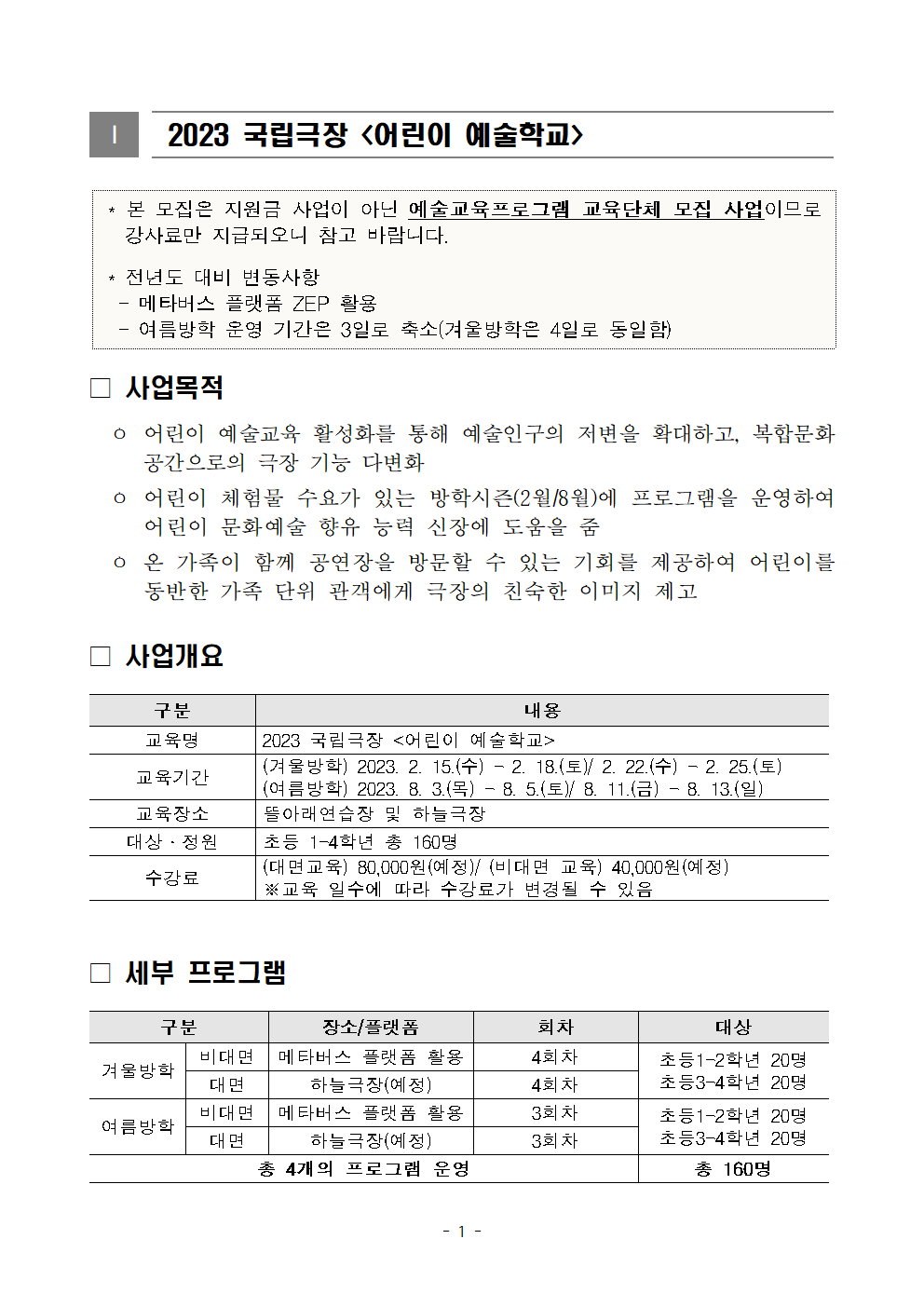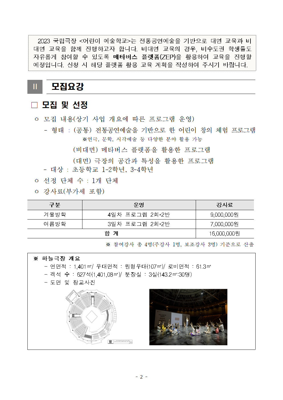 | 2023 국립극장 <어린이 예술학교> 운영 교육단체 모집 안내 | |||