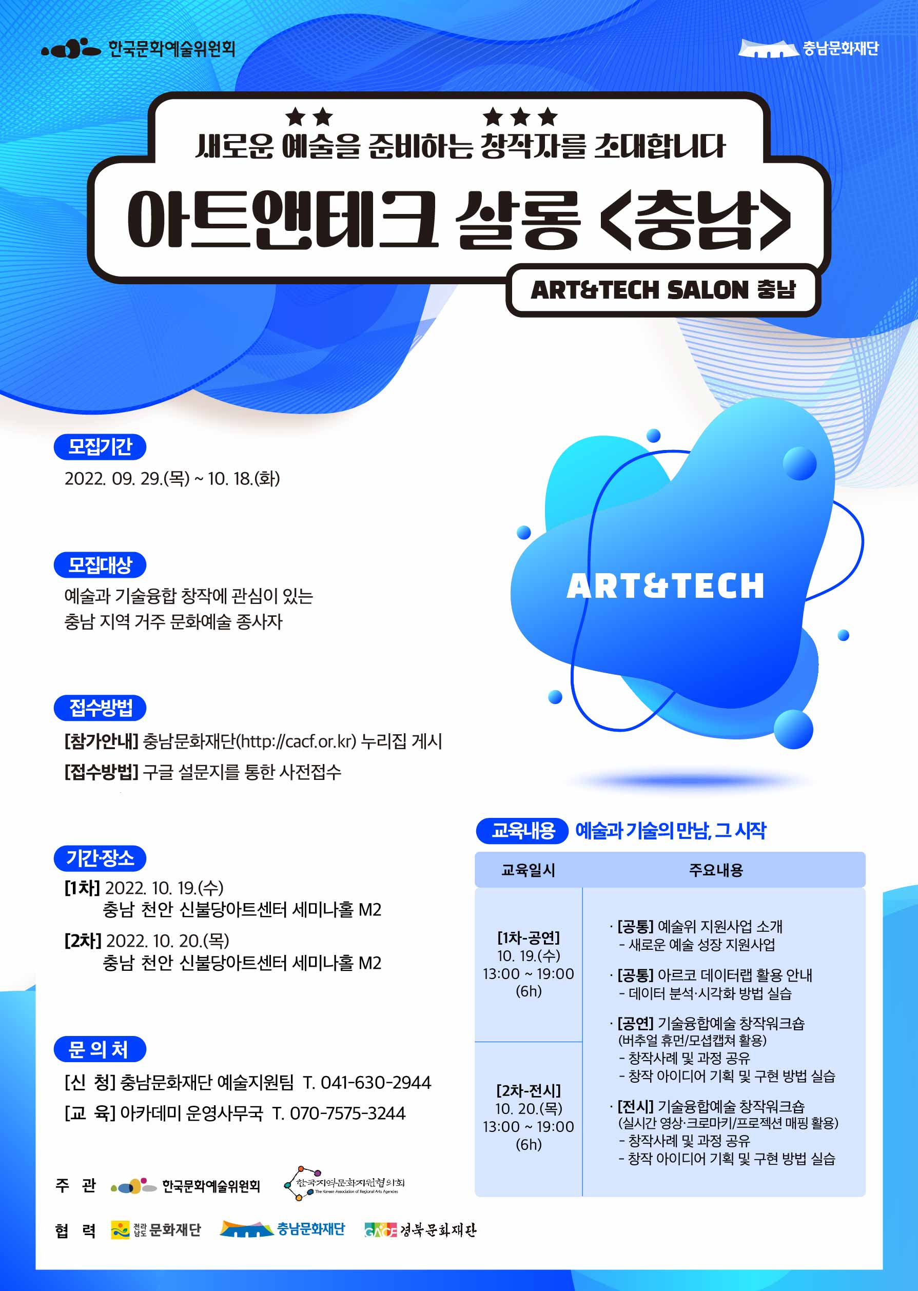 | 2022 한국문화예술위원회와 충남문화재단이 함께하는 「아트앤테크 살롱<충남>」 참여자 모집 | |||