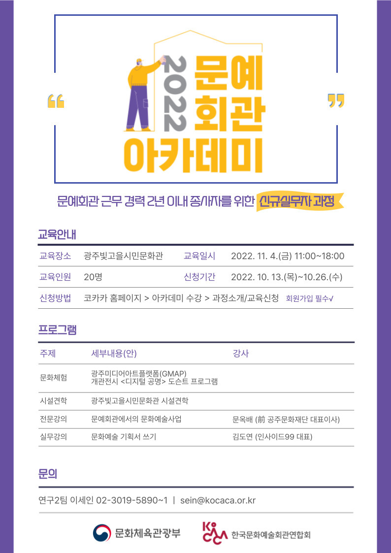 | 2022년도 「문예회관 아카데미」 신규실무자 과정 신청 안내 | |||