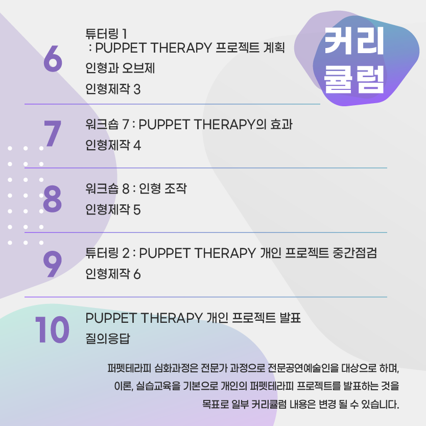 | 2022 전국 공연예술 창제작 유통 협력사업 PUPPET THERAPY 심화과정 | |||