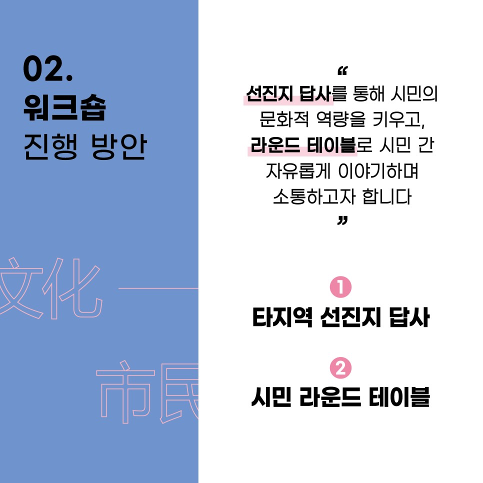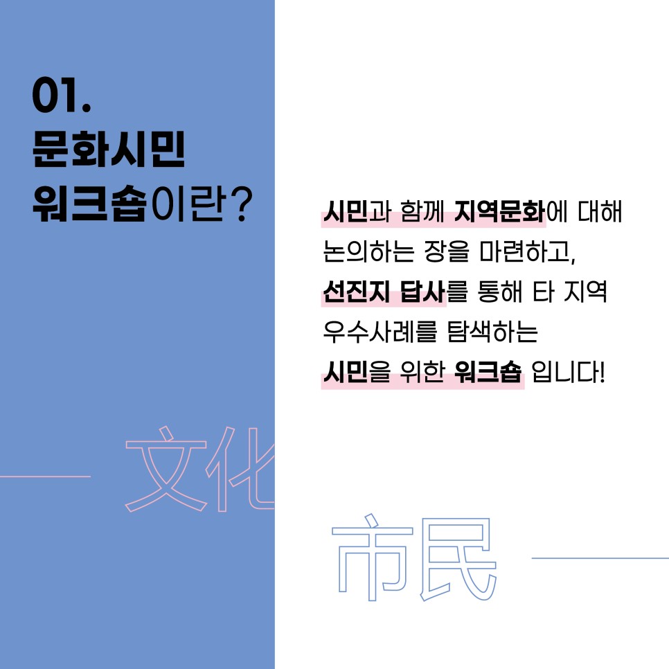 | 분야·대상 | 관내에 거주하거나, 직장에 재직 중인 문화도시 및 문화 활동에 관심이 있는 시민 | 인원 | - |