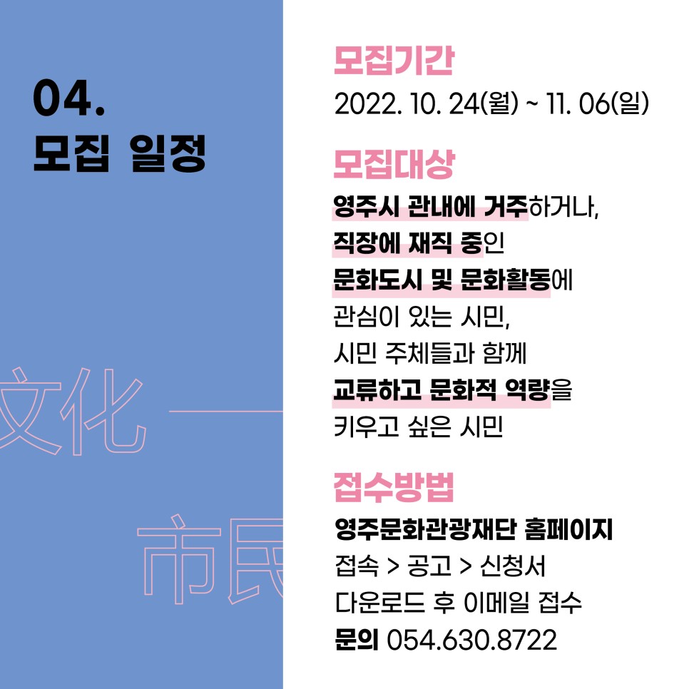 | 2022영주문화특화지역 조성사업 - 문화도시기반조성 「문화시민 워크숍」 - 참여자 모집 공고 | |||