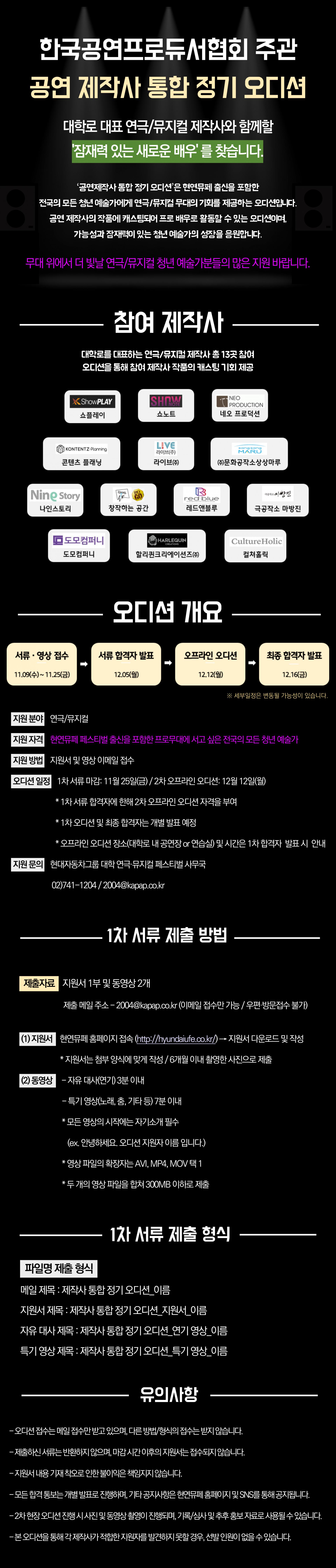 | [한국공연프로듀서협회 주관] 공연 제작사 통합 정기 오디션 지원 안내 | |||