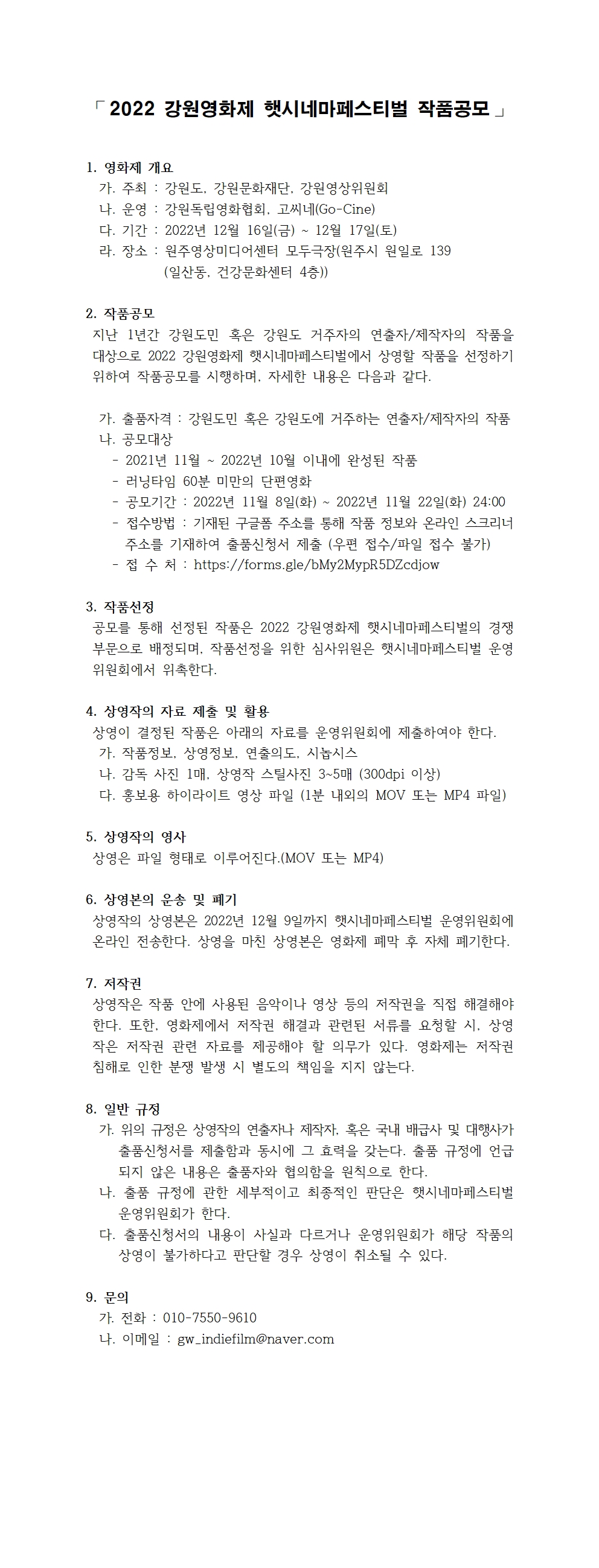 | gw_indiefilm@naver.com | 전화번호 | 010-7550-9610 | |