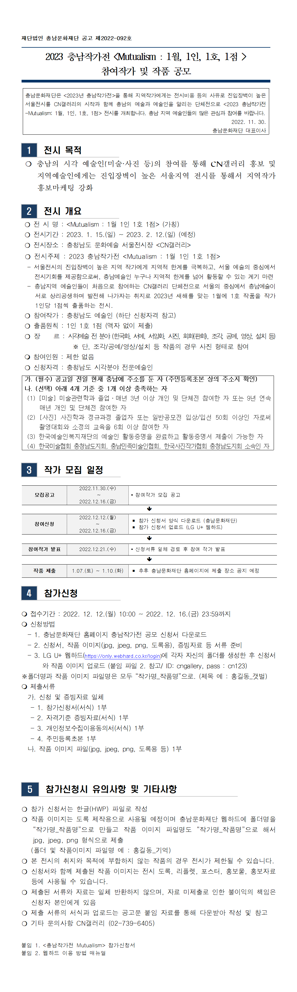 | 분야·대상 | 충청남도 예술인 | 인원 | - |