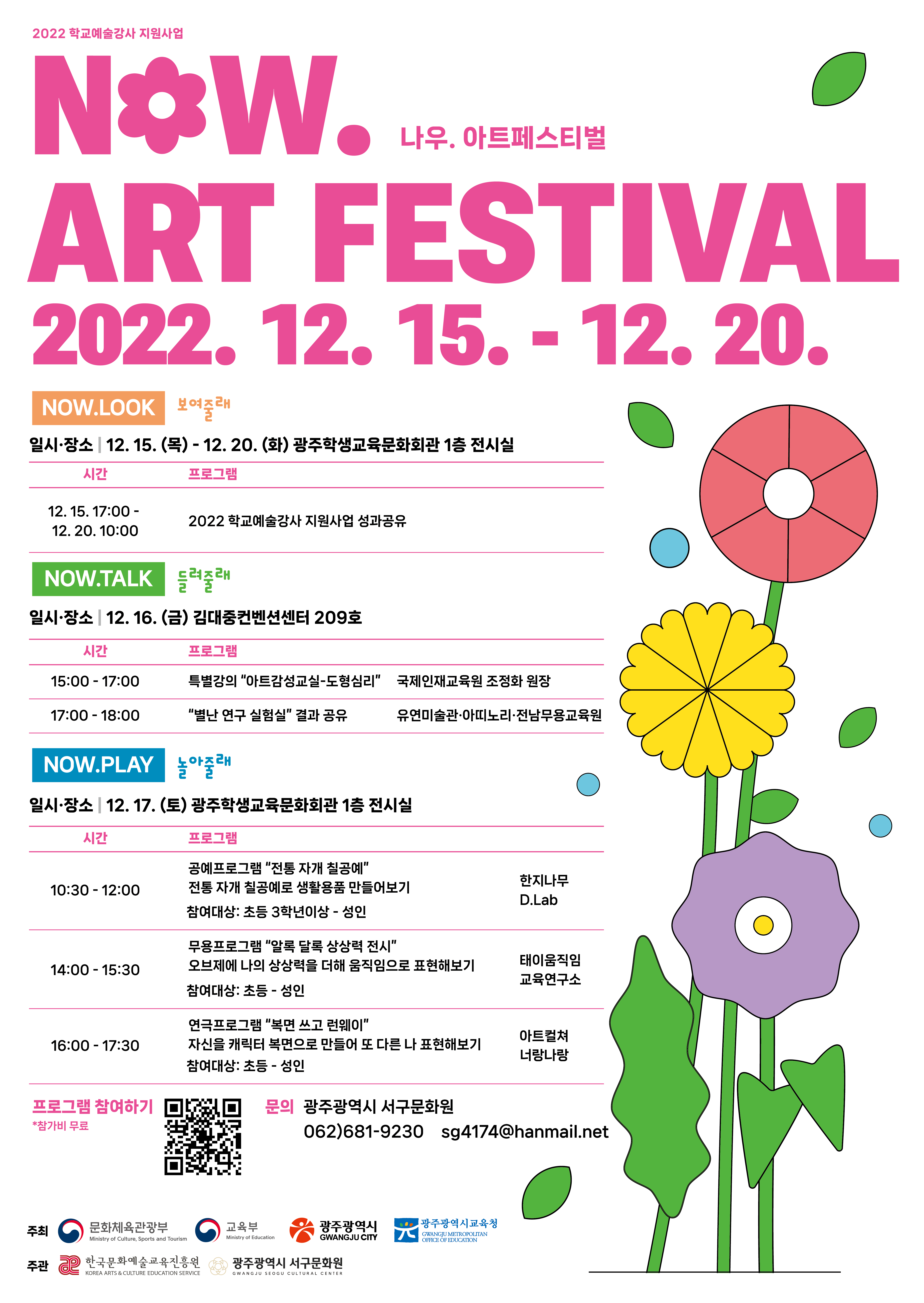 2022 학교예술강사 지원사업「NOW.ART FESTIVAL」이 12월 15일~12월 20일까지 개최됩니다.