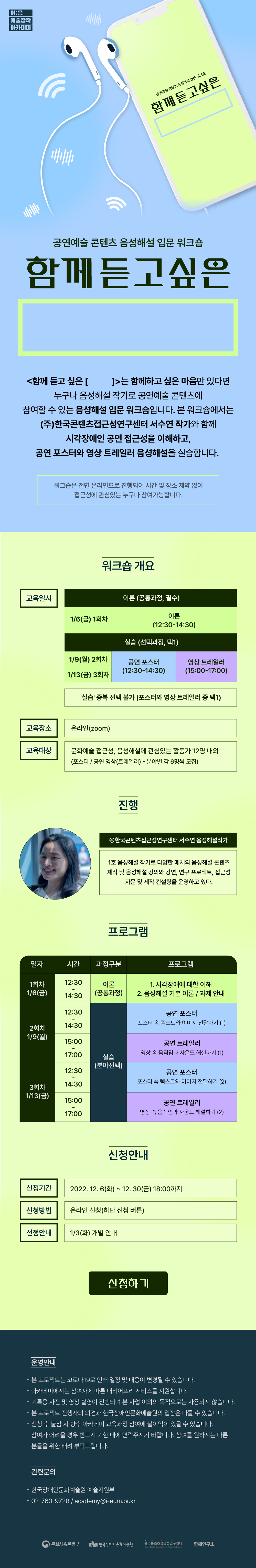 | [아카데미] 공연예술 콘텐츠 음성해설 입문 워크숍 <함께 듣고 싶은> 참여자 모집 | |||