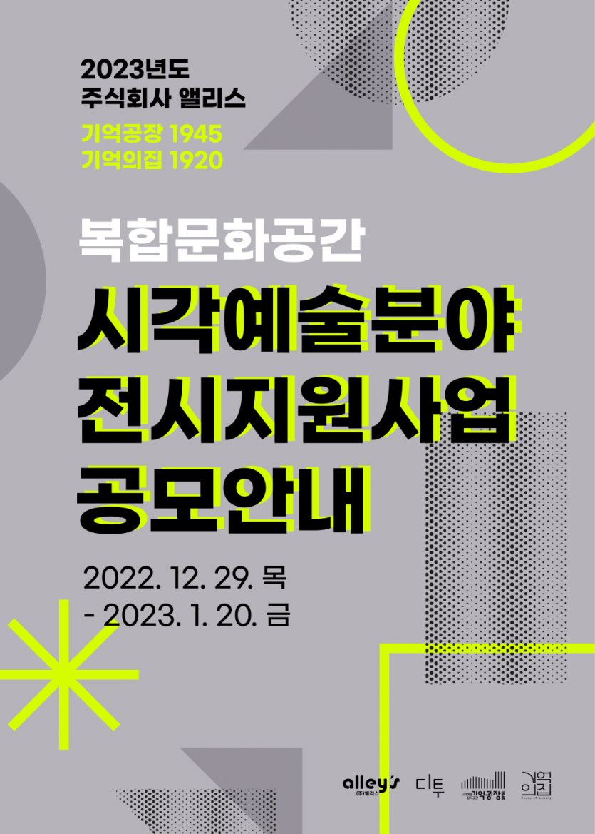 ![]() 2023년도 주식회사 앨리스 복합문화공간 시각예술분야 전시지원사업 공모