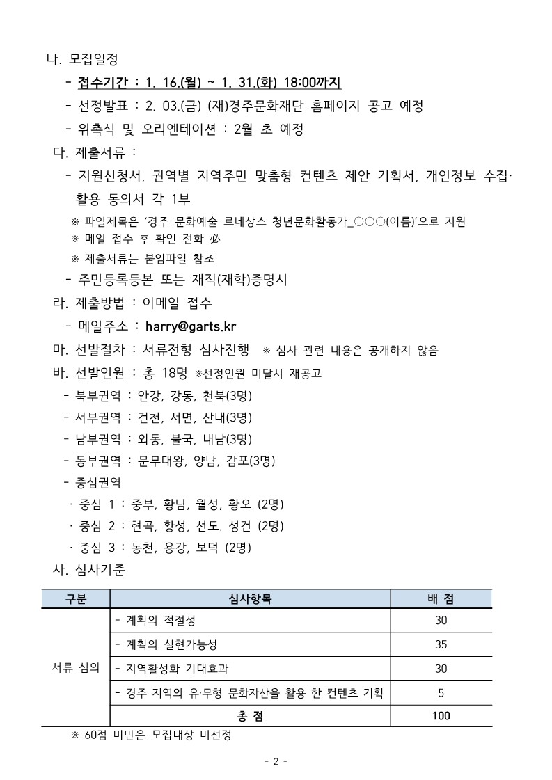 | harry@garts.kr | 전화번호 | 경주문화도시사업단 054-777-6785 | |